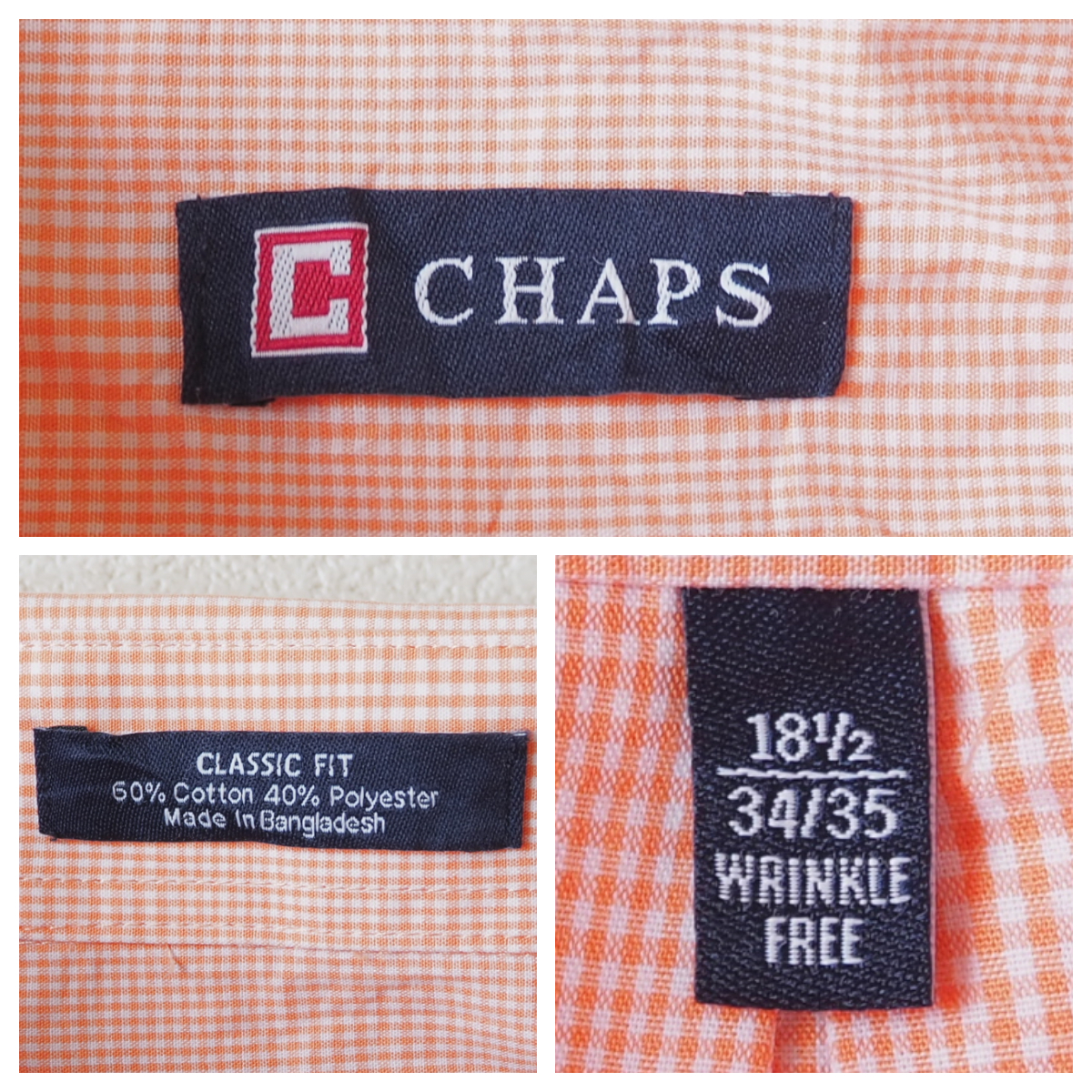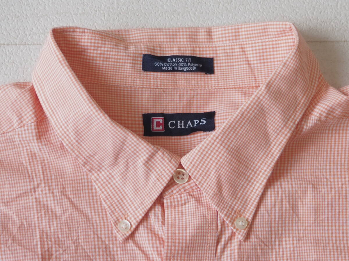 CHAPS チャップス USA直輸入 古着 長袖 胸ポケット付き チェック ボタンダウン シャツ メンズ 181/2 オレンジ トップス 中古