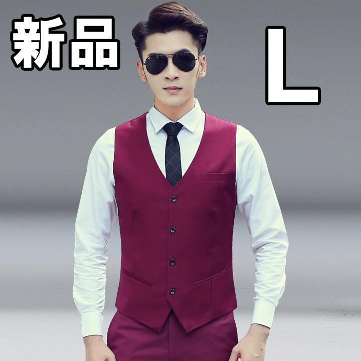 ベスト ジレベスト 尾錠付き 結婚式 フォーマル パーティー ビジネス オールシーズン Lサイズ レッド