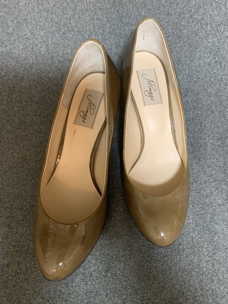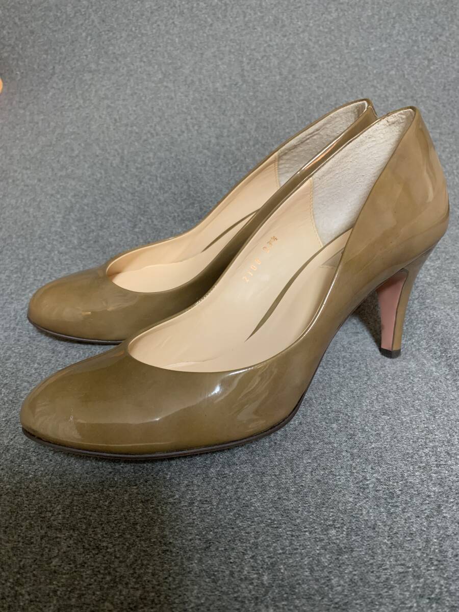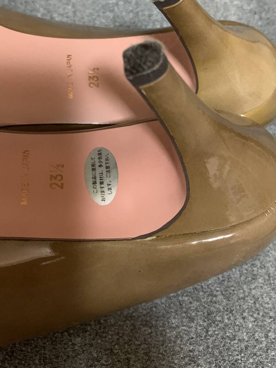 美品 パテント 茶 ブラウン系 パンプス 23、5 伊勢丹購入 日本製