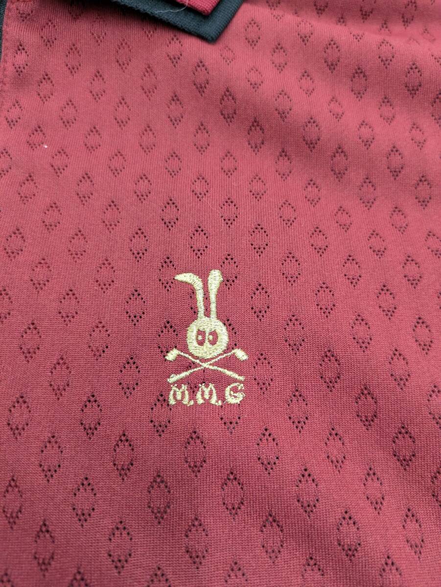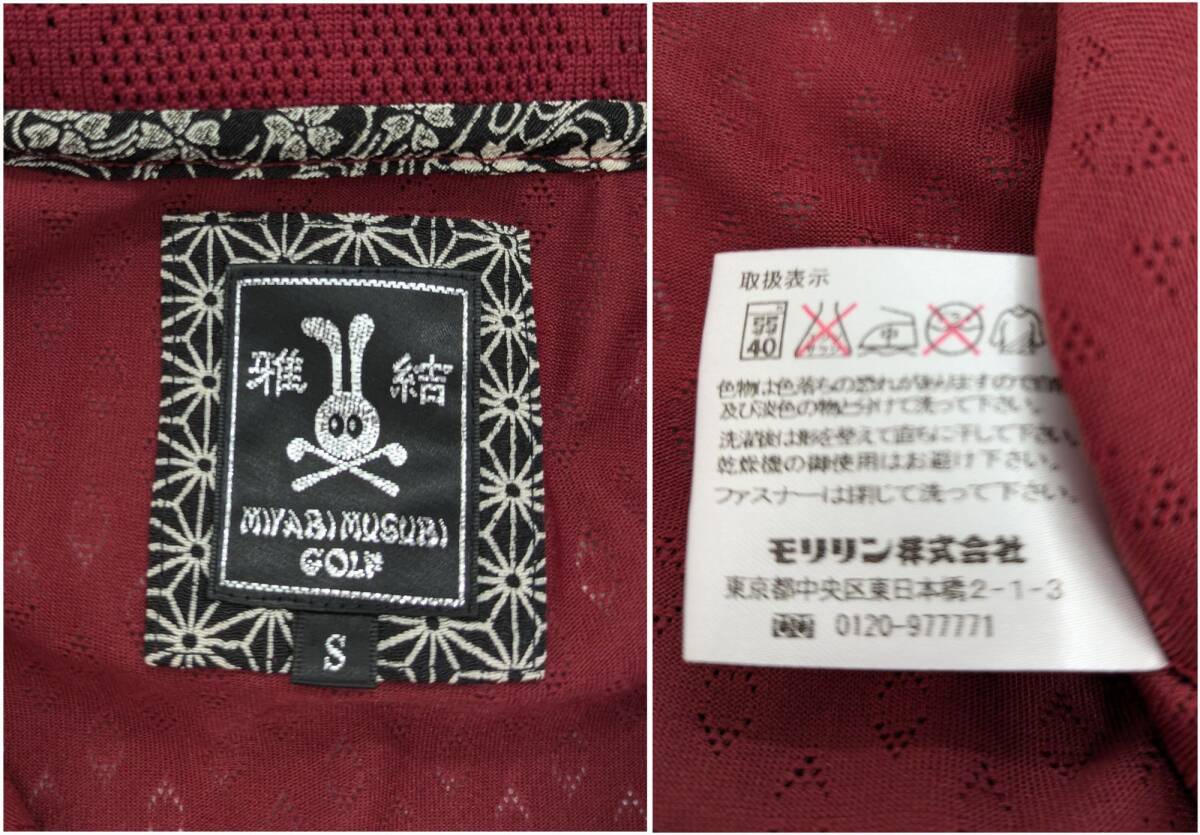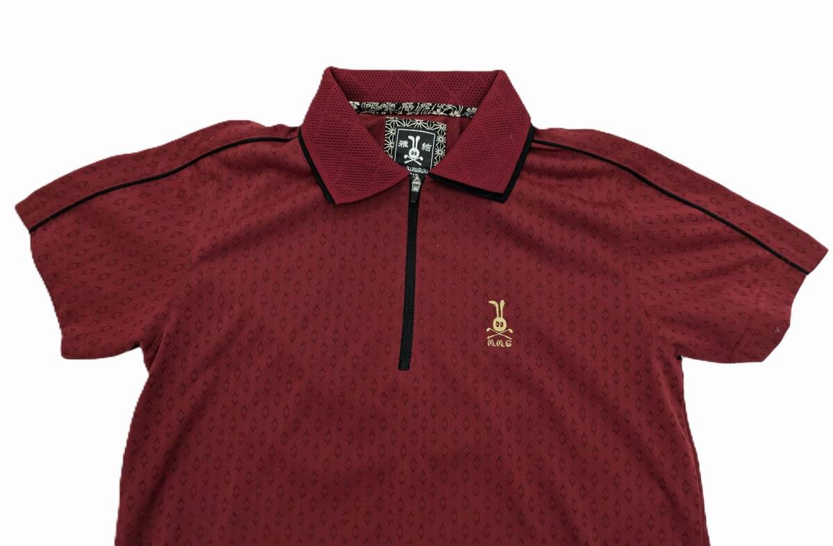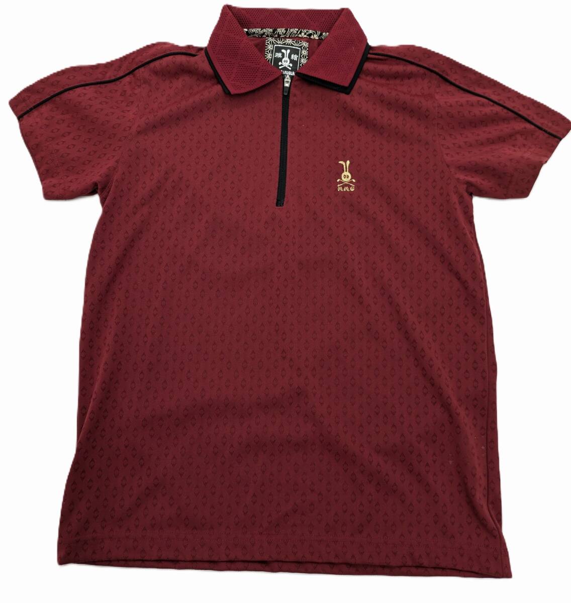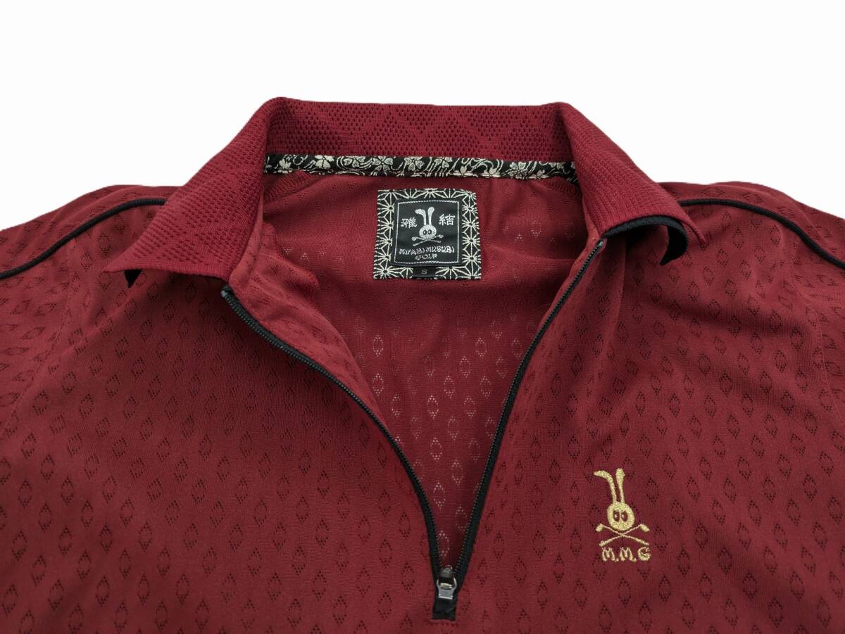 中古 雅結 GOLF みやびむすび ハーフジップ シャツ メッシュ 刺繍 半袖 ボルドー S