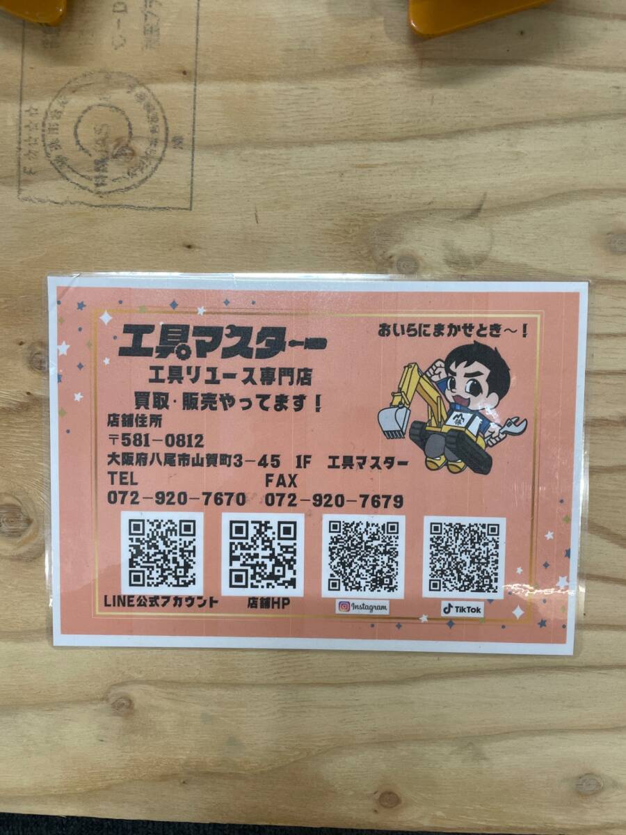 保管場所 | 工具マスター八尾 〒581-0812 大阪府八尾市山賀町3-45 |