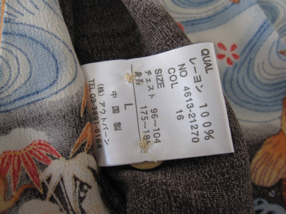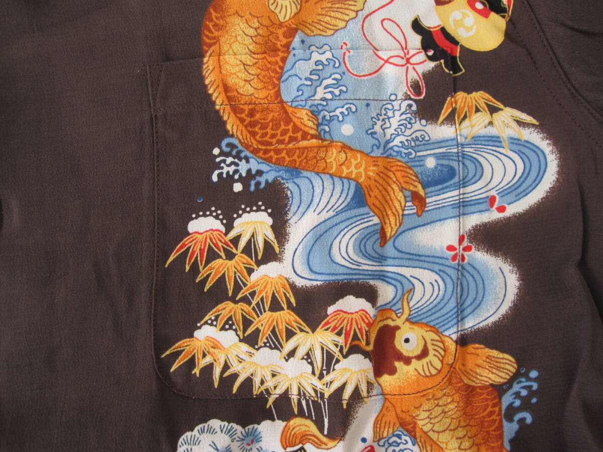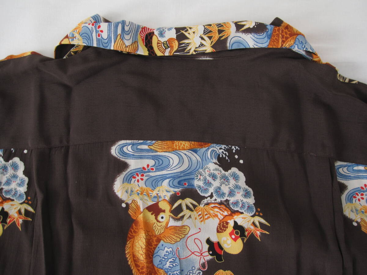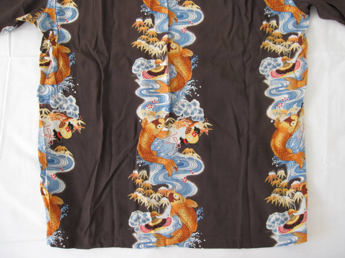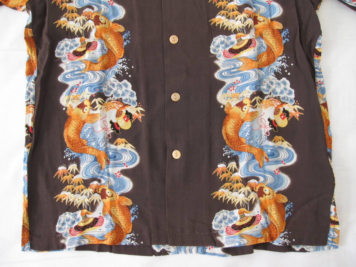 中古美品! ハワイアン アロハ トロピカル アロハシャツ 鯉柄 ブラウンベース サイズ(L) 素材(レーヨン 100%) 中国製 長期保管品