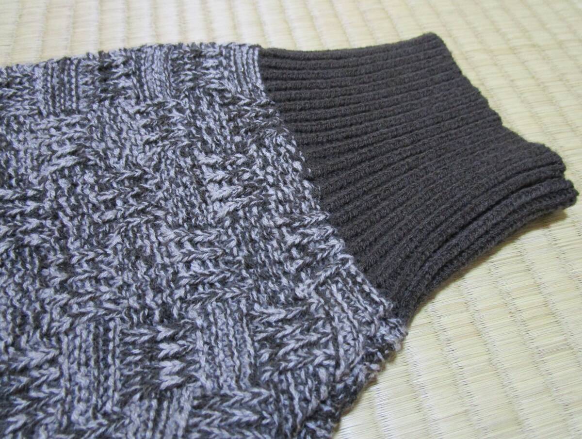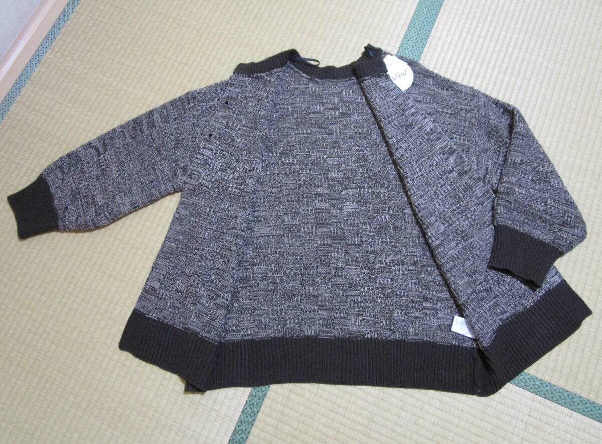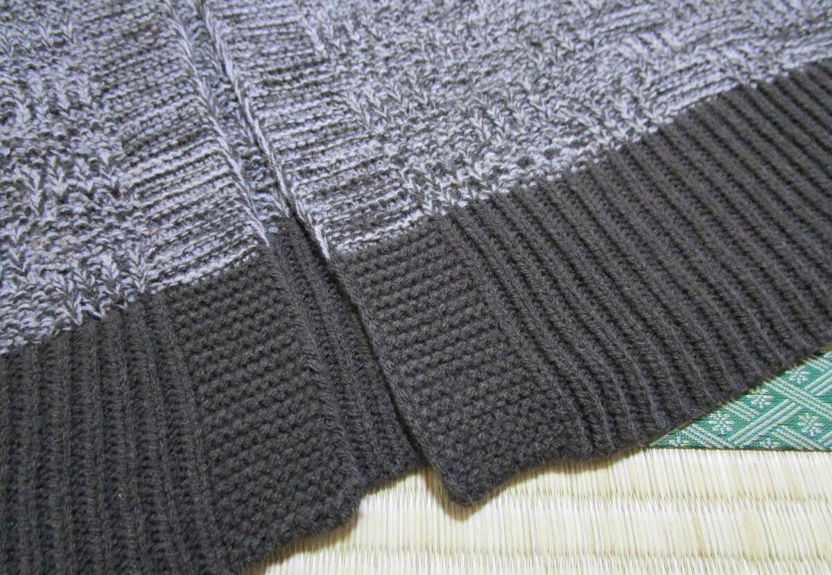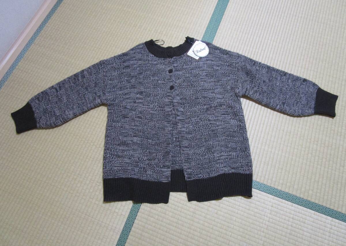 ボタンは上から3段までで下はボタン無し。前後2通り着られるニットカーディガン。
