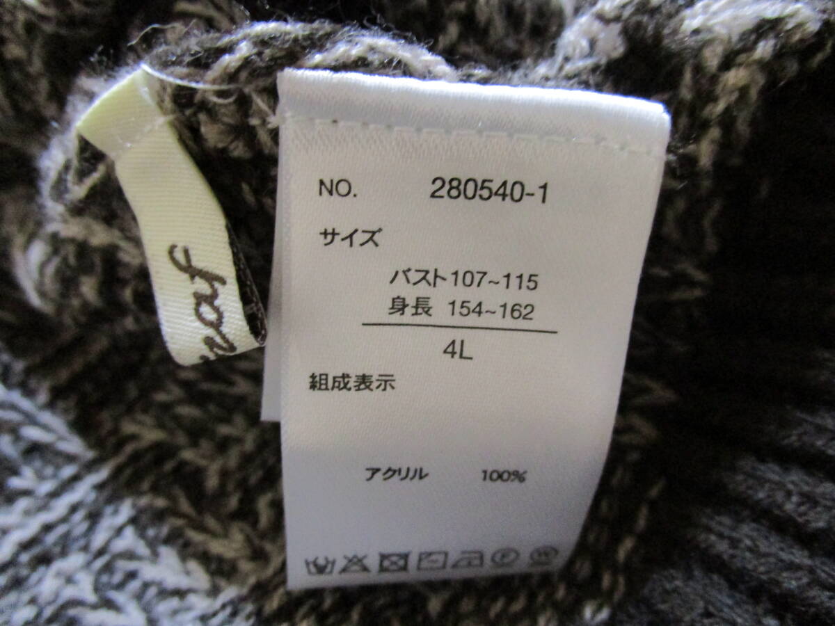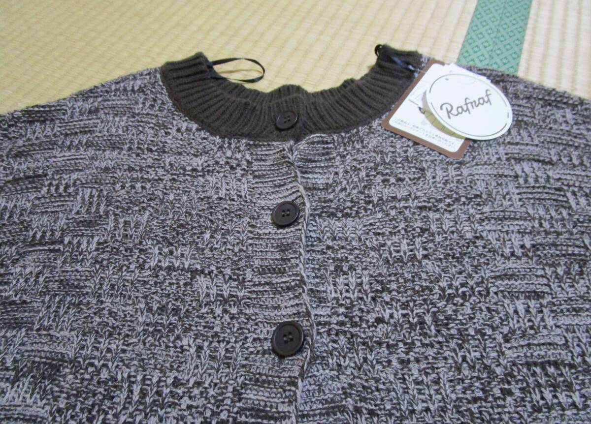 ★RAFRAF ラフラフ カーディガン 4L バスト107~115 身長154-162 オーバーニットカーディガン 2WAY 茶色 ラーベン柄 ツイード★