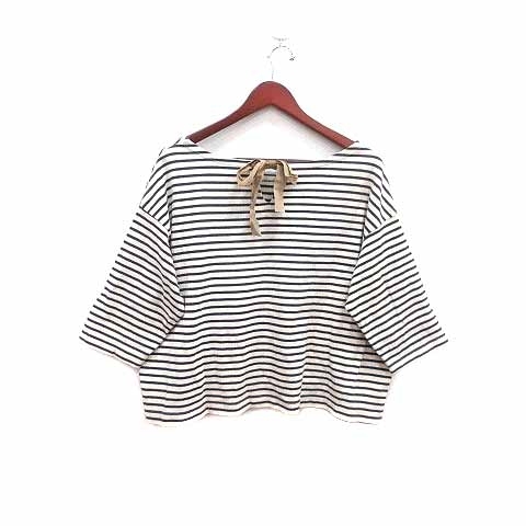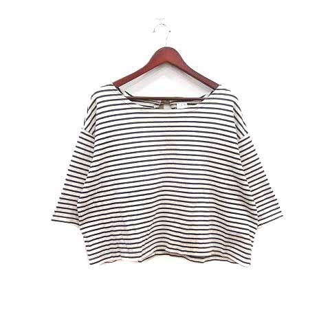 トータリテ Totalite カットソー ボートネック ボーダー 七分袖 紺 ネイビー 白 ホワイト /YK レディース