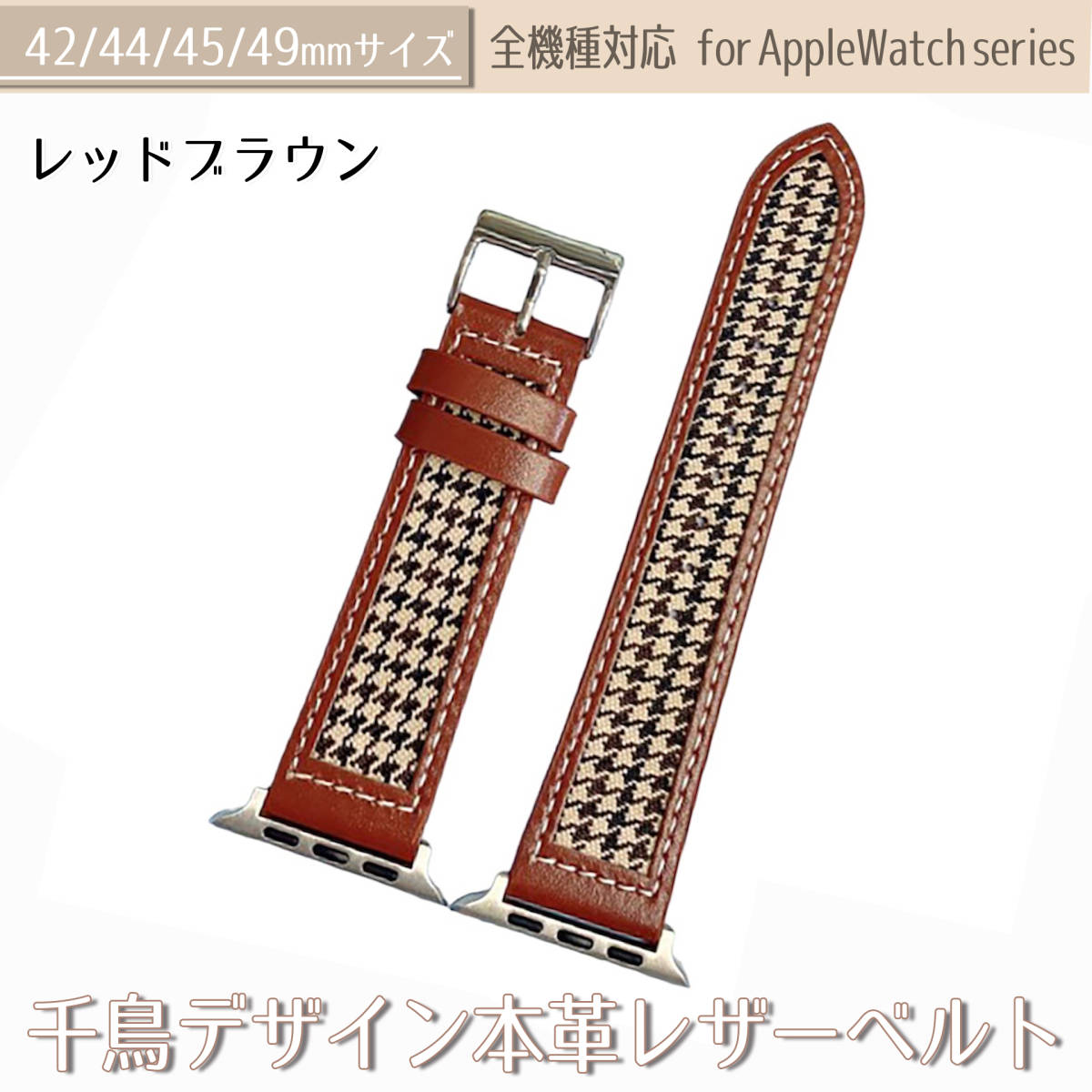 【AFP】アップルウォッチ バンド ベルト 革 千鳥 本革レザー レッドブラウン バイカラー 42/44/45/49mm 交換ベルト apple watch