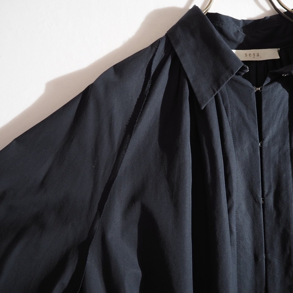 M5140P ▼seya. セヤ▼ コットン ワイドスリーブ プルオーバー シャツワンピース ネイビー L オーバーサイズ 紺 春夏 rb mks