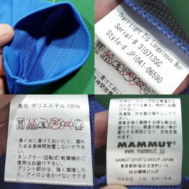 ▲MAMMUT 吸汗速乾 ポーラテックパワードライ ハーフジップシャツ TRAIL LIGHT ZIP LS MEN ブルー/チャコール アジアS 美品!!!▲
