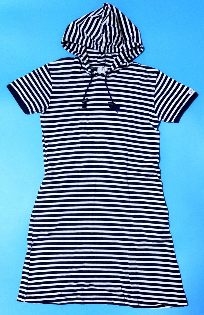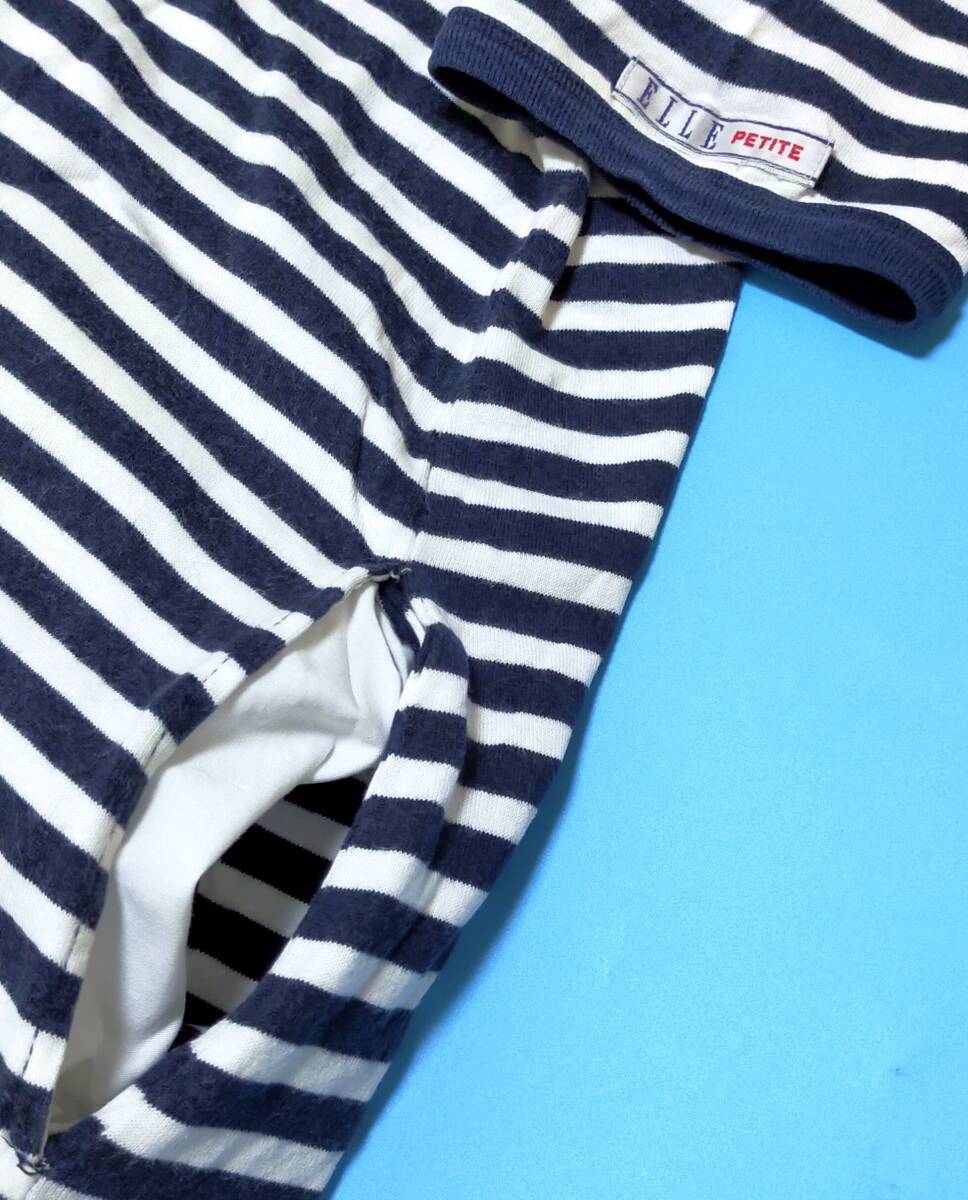 ELLE パーカー 半袖ワンピース ボーダー PETITE 綿100% 紺と白のボーダーで爽やかな印象を与えます♪