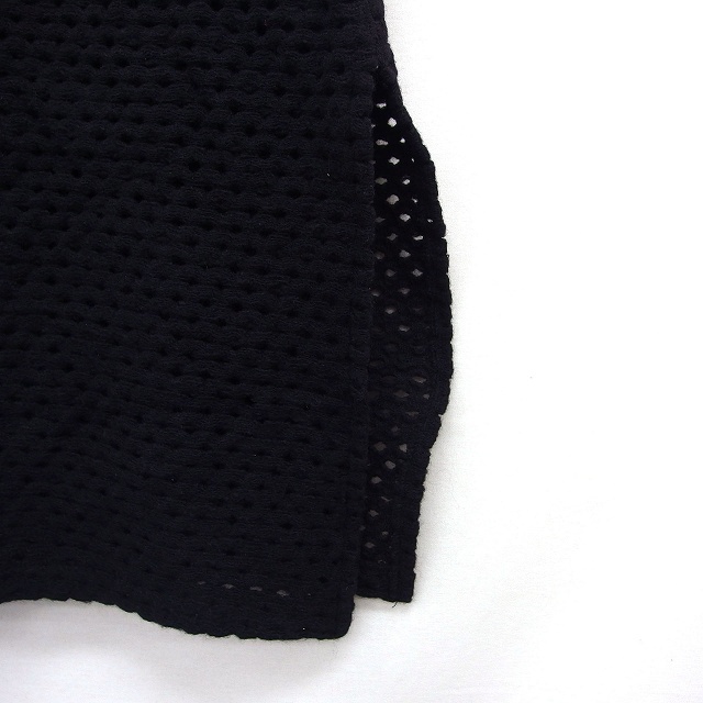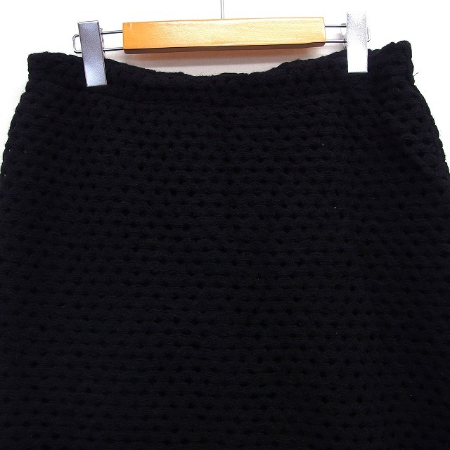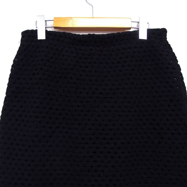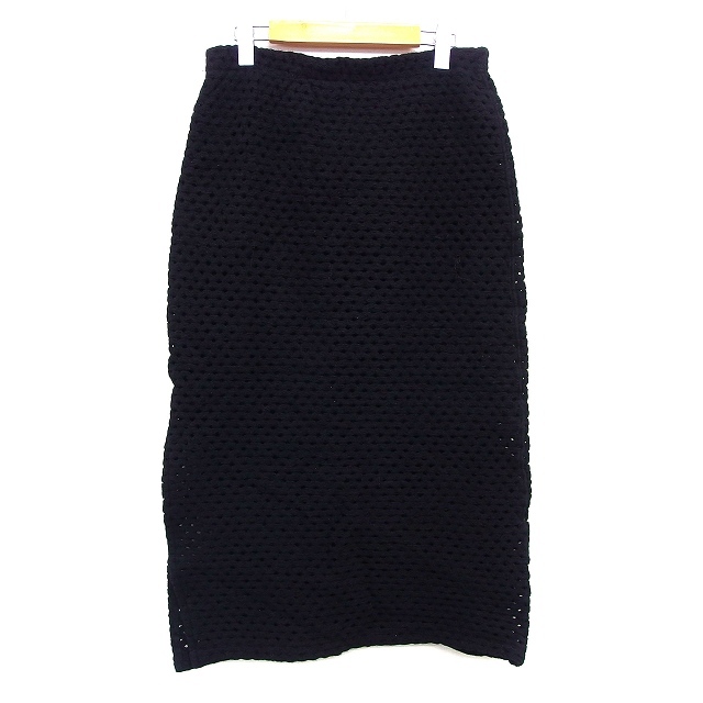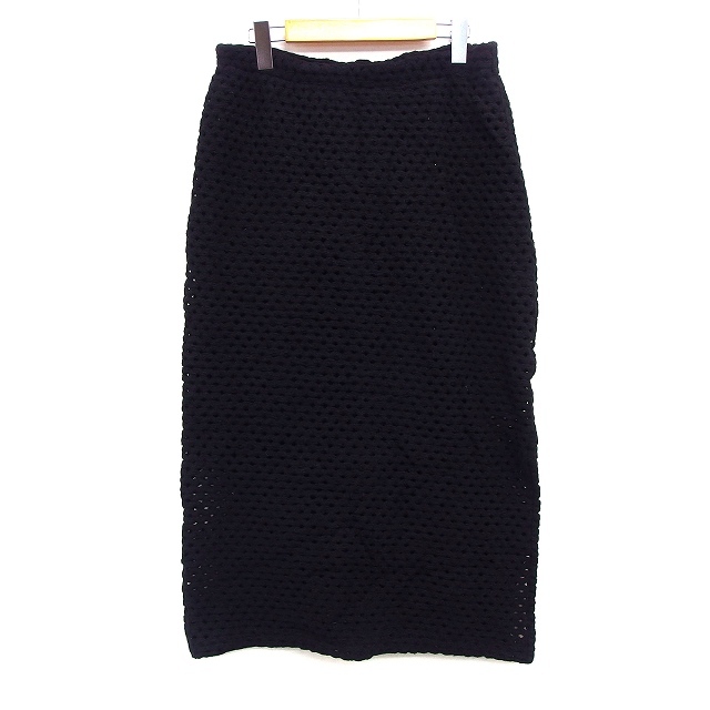 シスレー SISLEY ニット スカート Aライン ロング ミモレ丈 かぎ針編み 総柄 ウール混 M ブラック 黒 /HT35 レディース