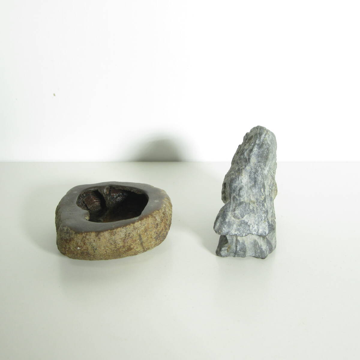 【 盆栽用品・石 】『 葛屋石・溜まり石( 茅屋石・くずや石・加工石 )2個セット! 』/ 添石 鑑賞石 添景 / 盆栽 山野草 の添石などに!