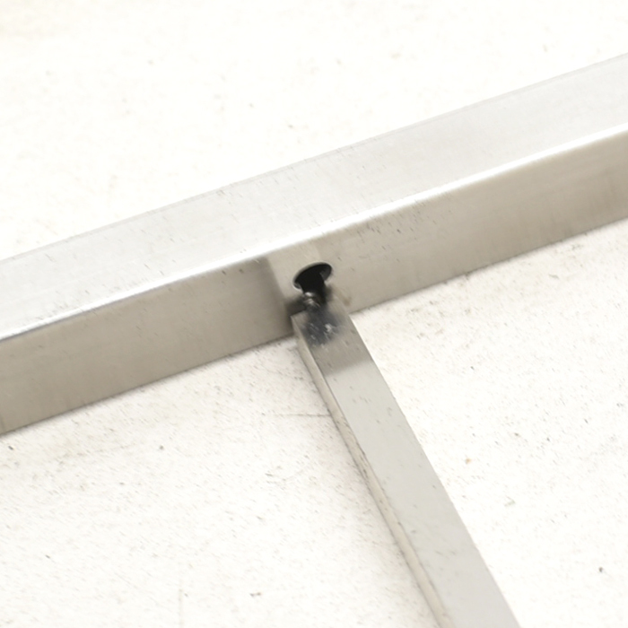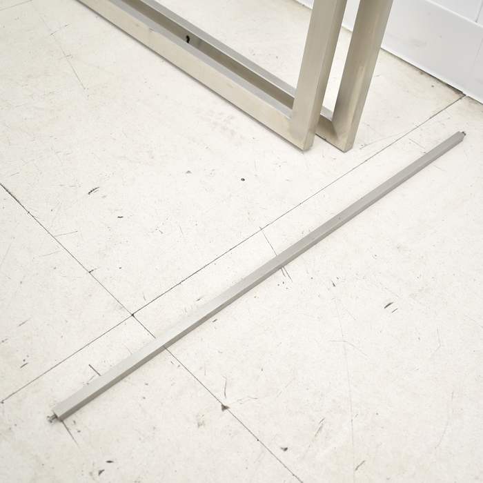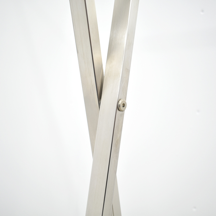 脚の中央部分に引っ掛けてあるバーを外すと折りたためます。