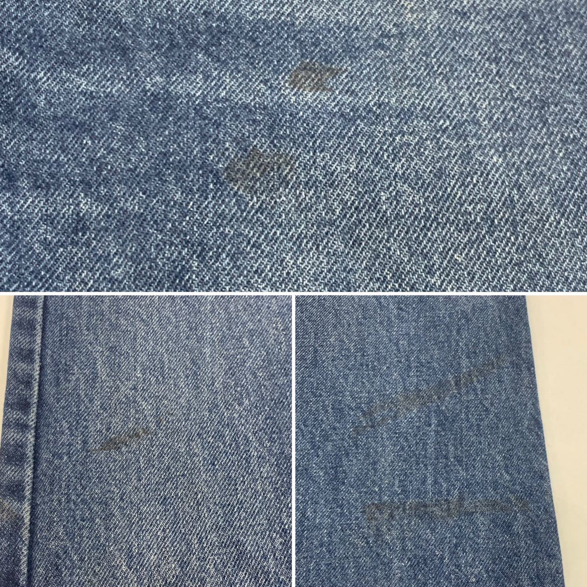 表裏右膝あたり、前左腿あたりに若干の汚れがございますが、その他大きなダメージや汚れはなく良いコンディションです。