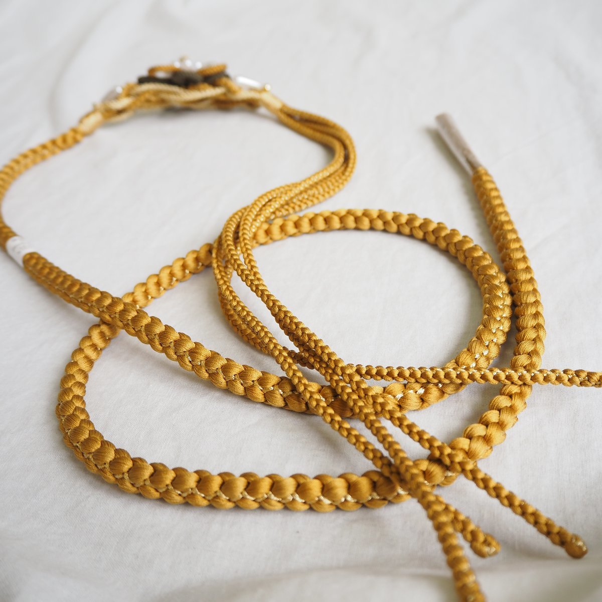 トレンドのくすみカラーの華やかな正絹の帯締め。