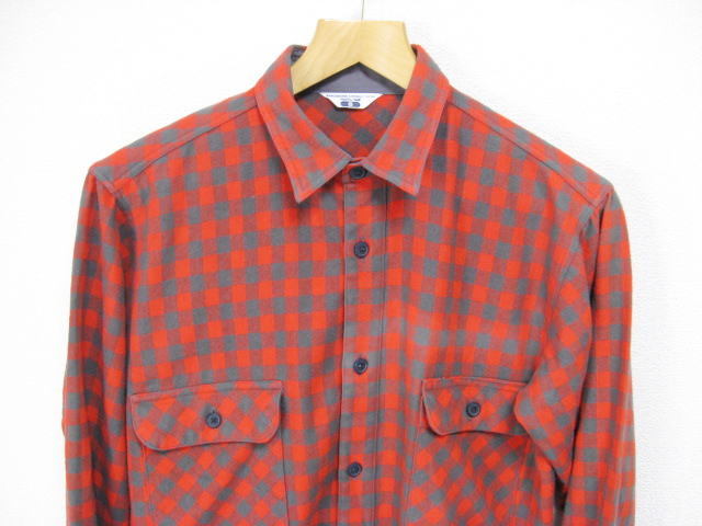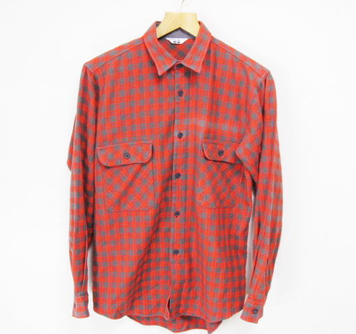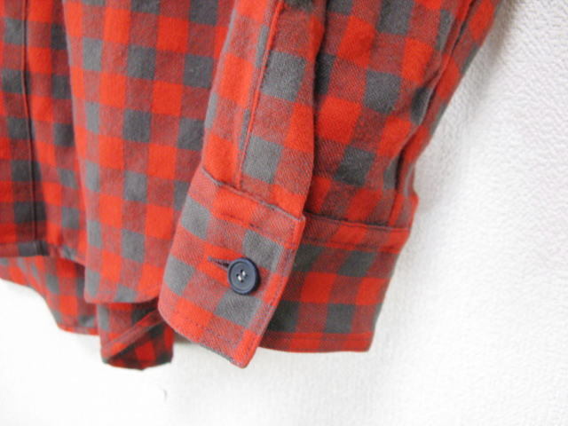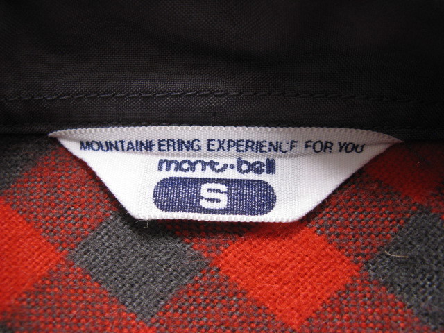 80s 旧タグ mont-bell (モンベル) トレッキング シンセティックウール 長袖シャツ S 赤灰ギンガムチェック