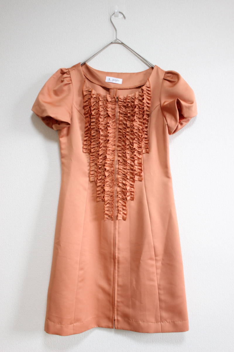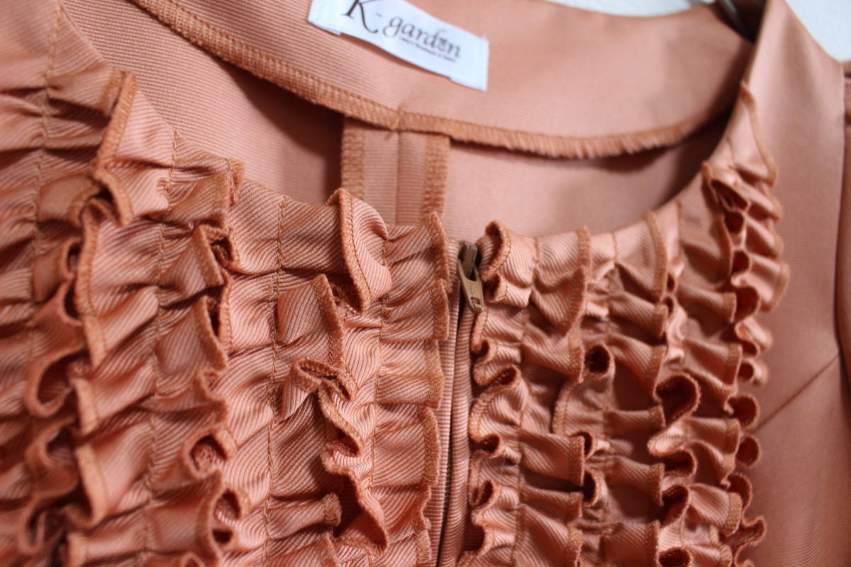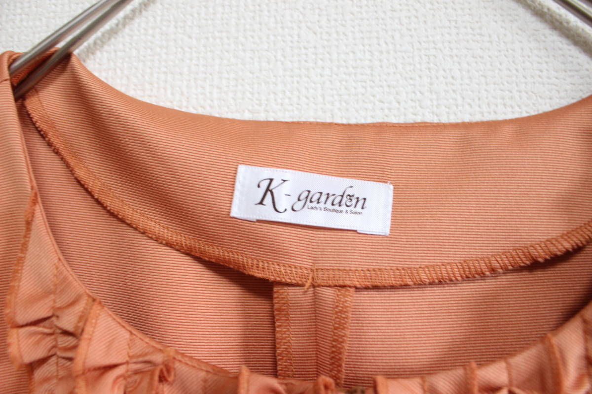 ・ブランド K-garden ケイガーデン ・アイテム ワンピース ・サイズ サイズ表示なし/Sサイズ相当かと思います。(着丈約83cm 肩幅約34cm 胸幅約44cm 袖丈約17cm ウエスト約37cm ヒップ約50cm) ・素材 素材表示なし/ポリエステルかと思います。 ・付属品 なし ・色 オレンジ ・管理番号 ・状態 10段階中8程度。特に目立つダメージはございません。自宅保管ですので神経質な方はお控え下さい。USEDですので御理解下さい。 ・袖のみ裏地あり、ポケットあり。着用シーズンは春夏かと思います。フリルをふんだんにあしらった華やかデザインのワンピースです。前面ファスナー開閉ですのでワンピースとしても上着としても着用出来ます。 |