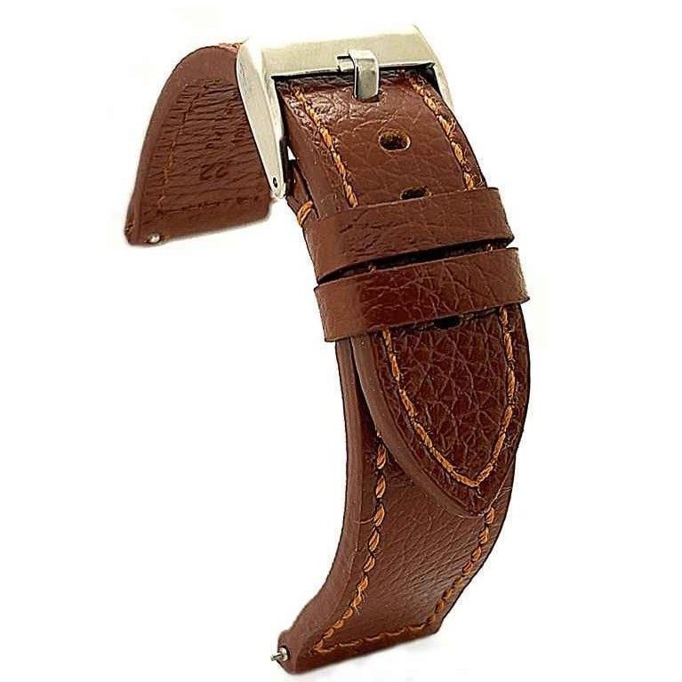 バッファロー彫刻が施された牛革製の時計ベルトです。