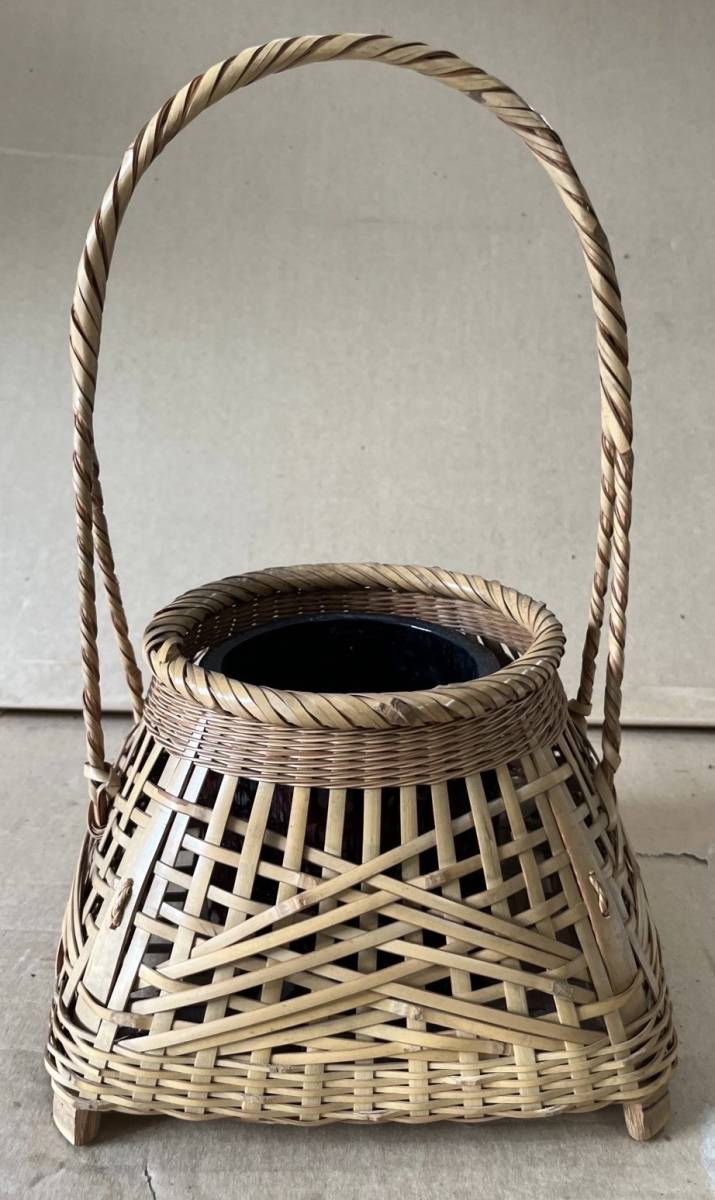 【No.513】華道具 華道 手持ち竹籠花入 竹細工 竹工芸 竹籠 花瓶 花生 花入 花器 骨董 中古品
