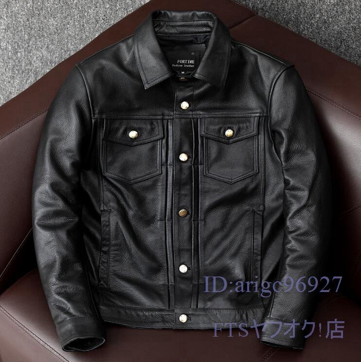 V223☆新品レザージャケット 上品 本革 牛革 高級 ライダースジャケット 革ジャン S~5XL 秋冬 黒