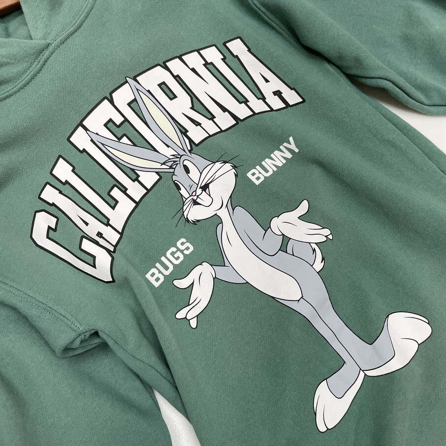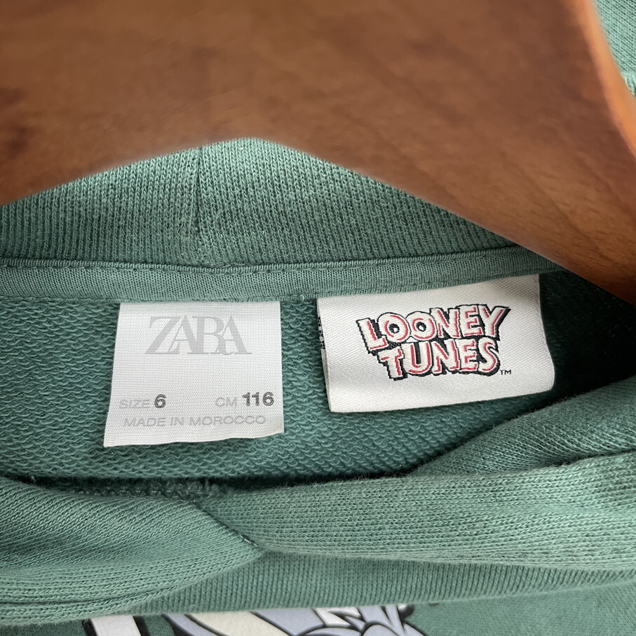 【116cm】ZARA グリーン スウェットシャツワンピース ルーニーテューンズ バッグスバニー キッズ 女の子 男の子 カジュアル大人可愛い ザラ