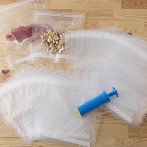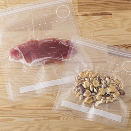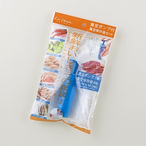 「貝印 KAI 真空ポンプ 保存袋 Kai House Select スターターセット DH2058」▼4901601214543▼(商品説明)・クリア DH2058・・PatternName:スターターセット・生鮮食品から乾物類まで、冷凍・冷蔵・常温と簡単操作で、幅広く使える真空保存袋です。袋に食材を入れて二重になっているジッパーを閉じたら、真空ポンプで袋の中の空気を抜くだけ。洗って繰り返し使用できるから経済的です。スターターセットは保存袋Sサイズ、Mサイズ各3枚に真空ポンプが入っっています。・【冷凍保存】解凍後の「いかにも冷凍っぽいにおい」を抑えることができます。「冷凍焼け」「冷凍臭」の原因は、食材の周囲の霜です。解凍する際、この霜が食材にニオイを移してしまうのです。真空保存袋で密閉することで、冷凍臭の原因となる食材につく霜の発生を抑えることができます。・【調理の下ごしらえにも】真空状態で食材を漬け込めば、調味料の浸透効率がアップし、 従来より少ない調味料で短時間で味がしみ込みます。最近「食材と調味料を入れて冷凍するだけで、しっかり下味がつく」と、話題の「下味冷凍調理」にも。・【密閉度と洗いやすさに優れた袋】7層フィルム構造で内側の片面をエンボス加工(凹凸状の加工)にすることでで、脱気性と洗いやすく丈食材の冷凍保存は時短調理に欠かせないものの、すぐに使わないと乾燥や霜・冷凍焼け・ニオイ・保存袋のコストが悩みの種ということもしばしば 本商品はそんな冷凍・冷蔵保存のお悩みを解決する多機能保存袋 簡単操作で脱気、食材を密封保存することでニオイ移りも抑える。洗って繰り返し使用できる。 1.調理の下ごしらえ 脱気により調味料の浸透効率を向上させ、味や見た目の質感を高める。塩分や調味料も減らせるので、健康面・コスト面にも配慮している 2.調理済み食材の保存 脱気により酸化を抑えて鮮度を維持。下ごしらえ後、脱気して湯せんなど新たな調理を加えた上での保存が可能 3.スペース効率UP タッパーなどの厚みがあってかさばる容器での保存にくらべてグッと省スペース 4.脱気により霜・冷凍焼けを抑え、鮮度を維持したまま2週間程度の保存が可能。霜を抑えることでニオイ移りも防ぐ