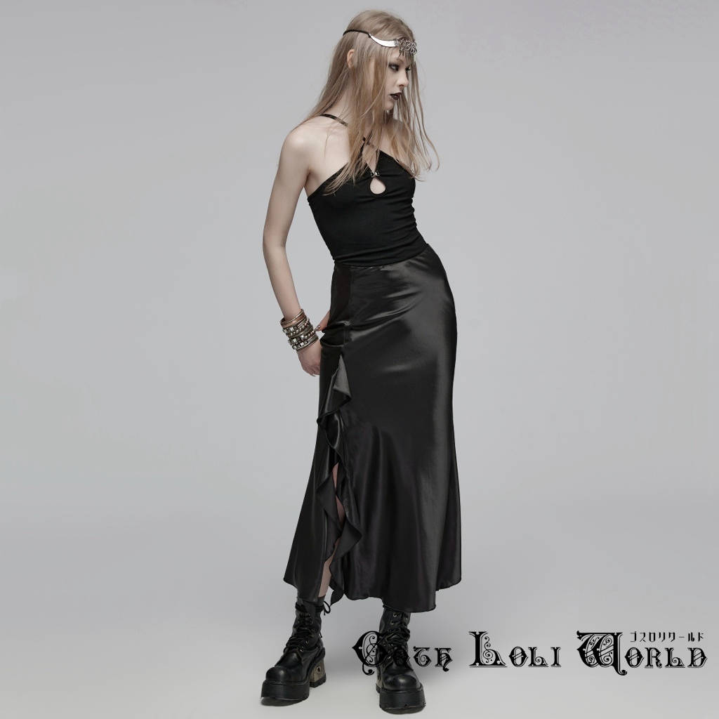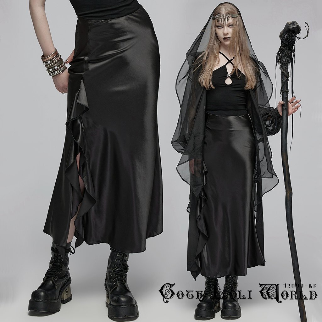 OPQ-1413DQF-BK-S ツヤ生地ポリエステルカッティング スカート ゴスロリワールド ゴシック パンク ロック ロリィタ ビジュアル系 V系