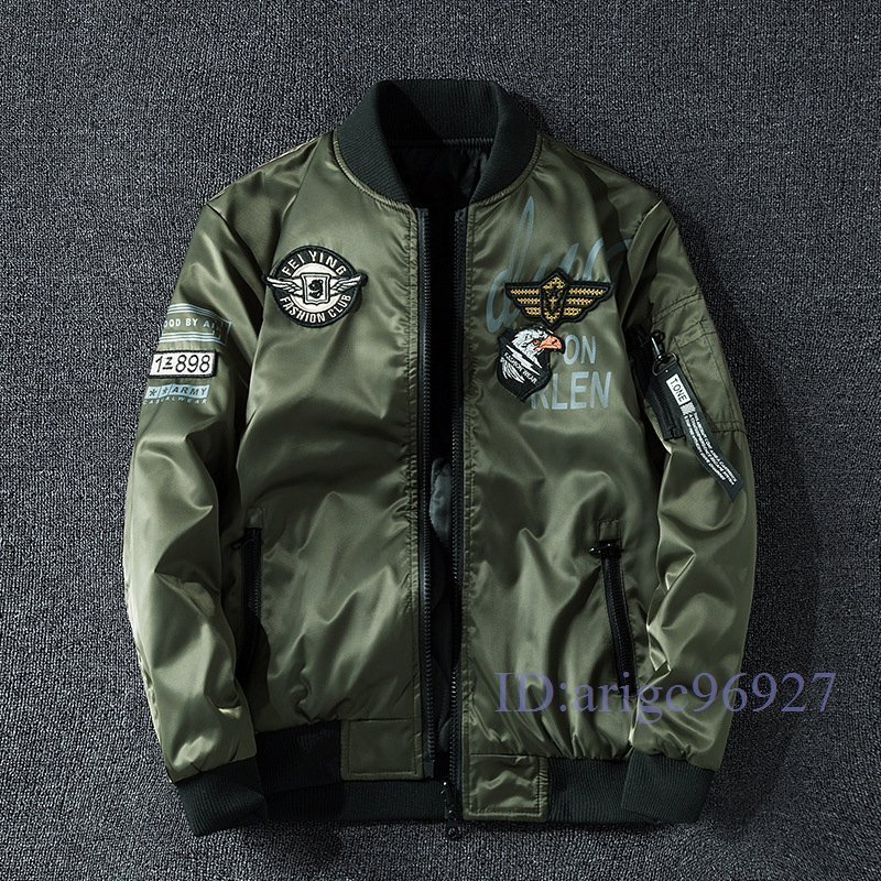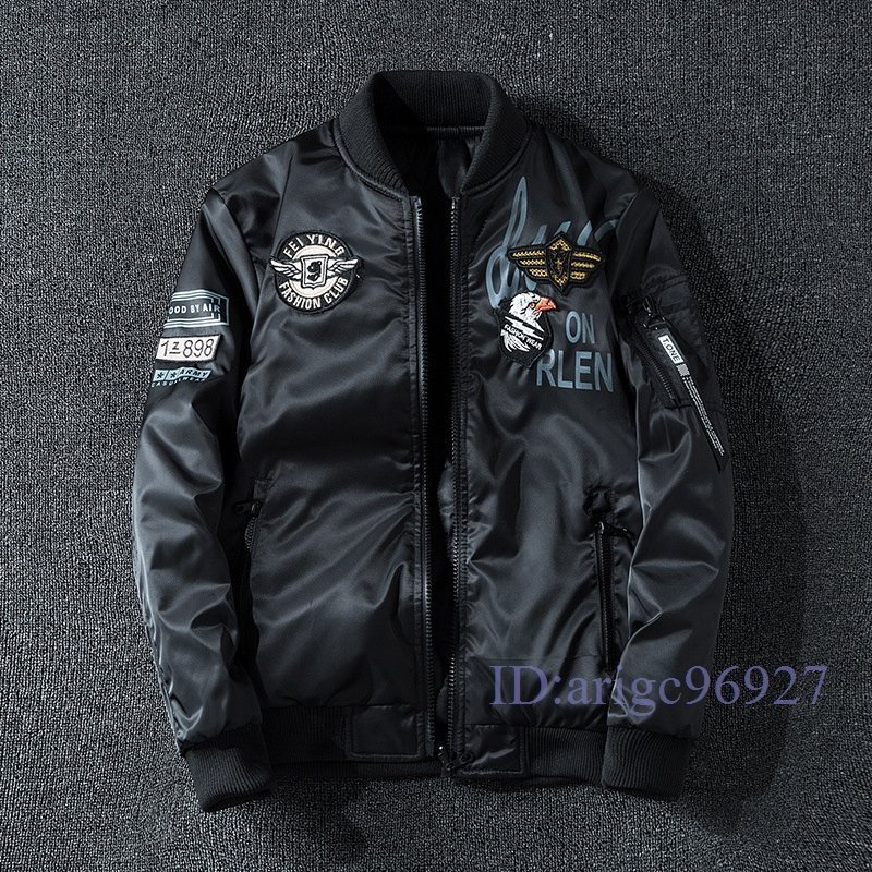 S975☆新品メンズ ミリタリージャケット フライトジャケット 両面着 MA-1 ジャンパー ブルゾン 大きいサイズ 黑 M
