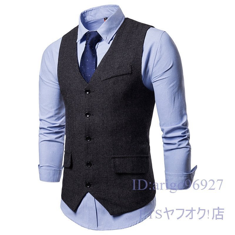 T226☆新品メンズ ベスト ビジネスベスト スーツベスト カジュアルベスト ジレベスト イギリス風 フォーマルベスト 3色選択 ブラック M