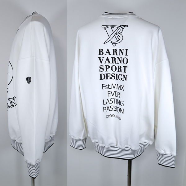 | ■形状/ ポリエステルの軽い着心地の丸首(クルーネック)トレーナーです。 ゆったりとした大きめサイズ、両面にロゴプリントが施されています。 |