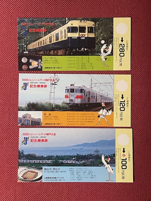 山陽電鉄 1985年 ユニバーシアード神戸大会 記念乗車券 3枚セット (管理番号6-19)