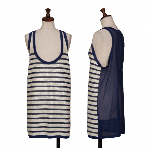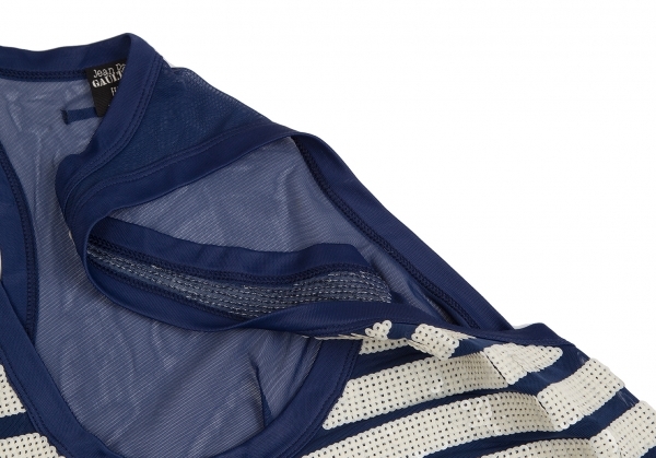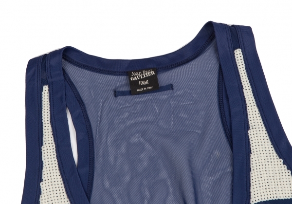 | ジャンポールゴルチエファムJean Paul GAULTIER FEMME スパンコールパワーネットタンクトップ 青白42 |