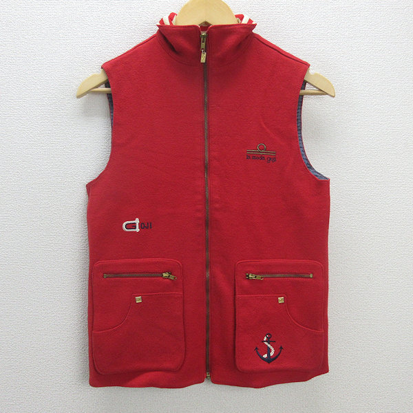 Q■伊太利屋 La Moda GOJI ラ・モーダ・ゴジ ウールベスト■赤【レディースM程度】80’Sレトロ/49【中古】