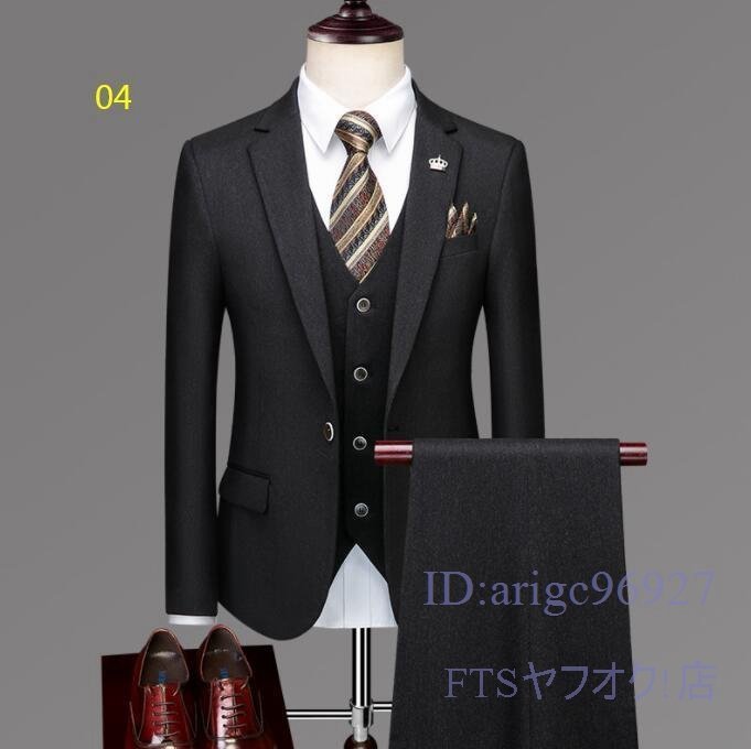 A1293☆新品スリーピース ビジネススーツ テーラードジャケット メンズ 3点セット ベスト スラックス 通勤 紳士服 [M~5XL]タイプ1
