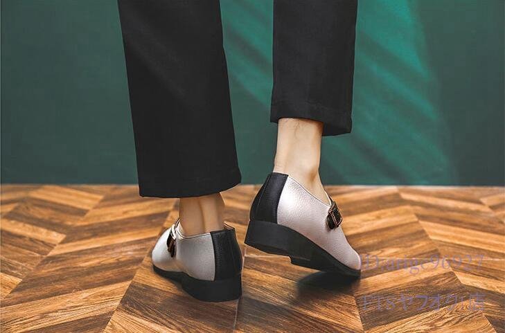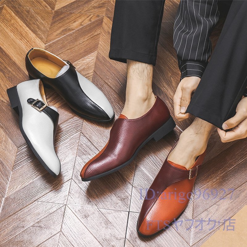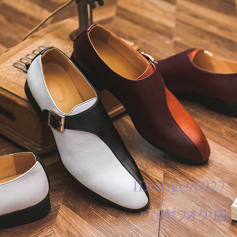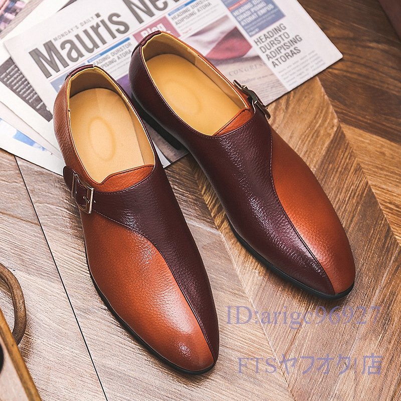 A1202☆新品メンズ靴 レザー シューズモンクストラップ ローファー カジュアル 配色切替 ドライビング トレンド ブラウン 27.0cm