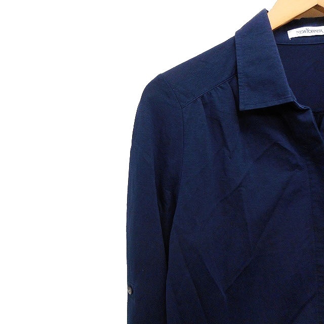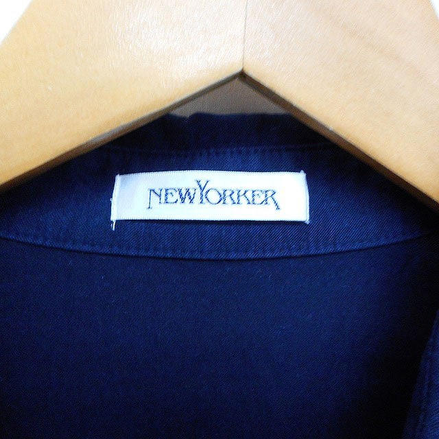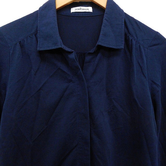 ニューヨーカー NEWYORKER ワンピース 長袖 ひざ丈 開襟 無地 コットン M ネイビー 紺 /FT24 レディース