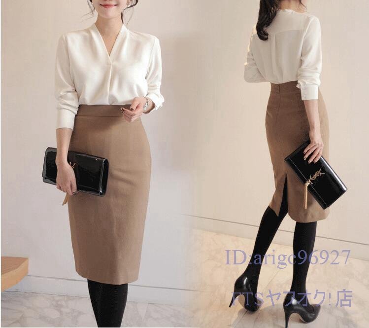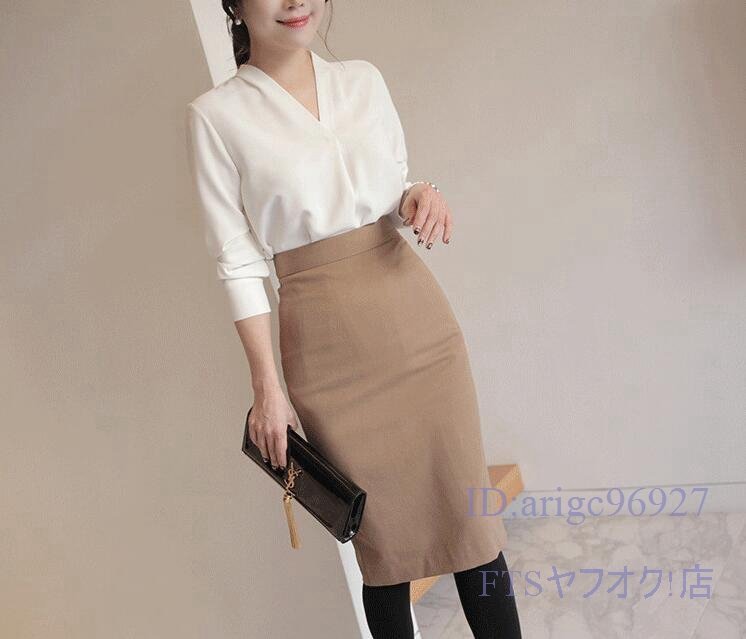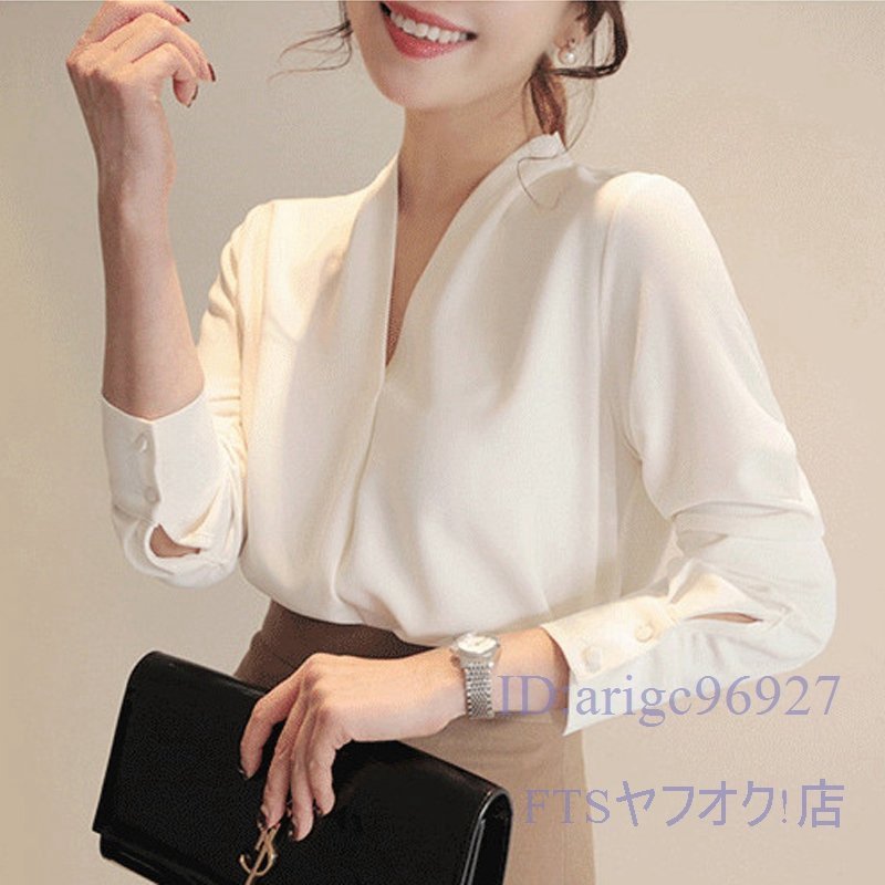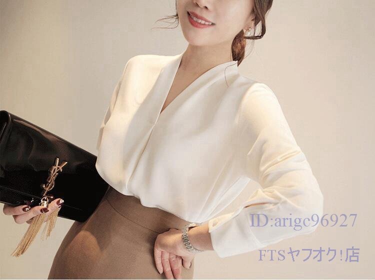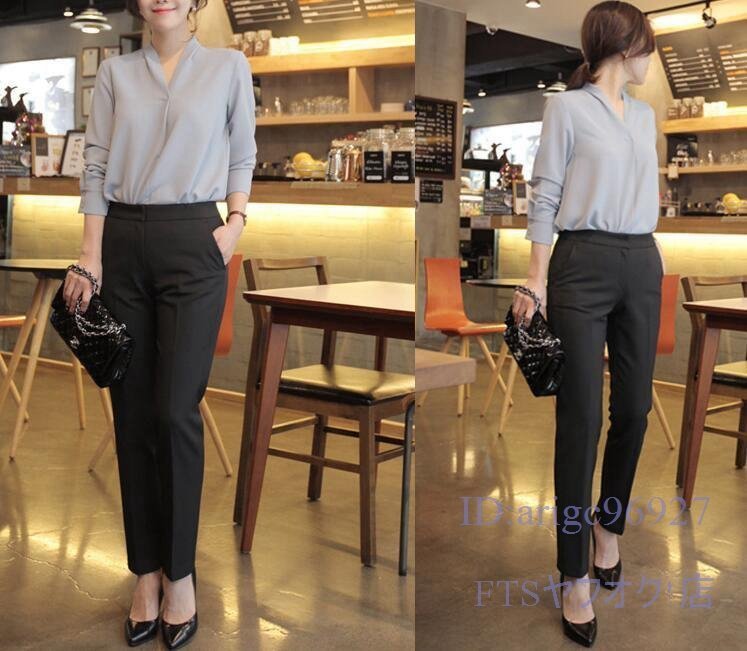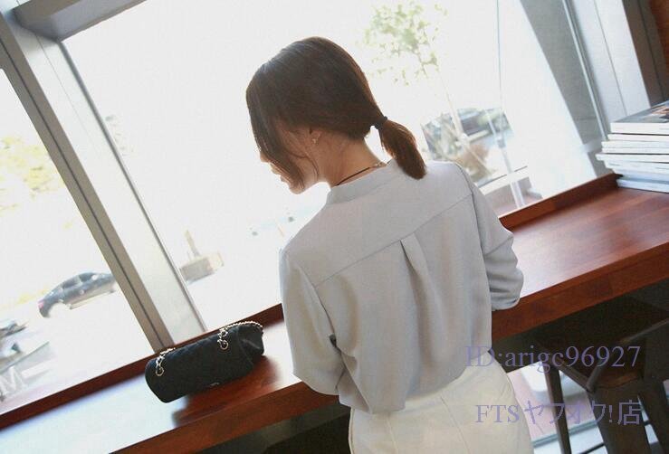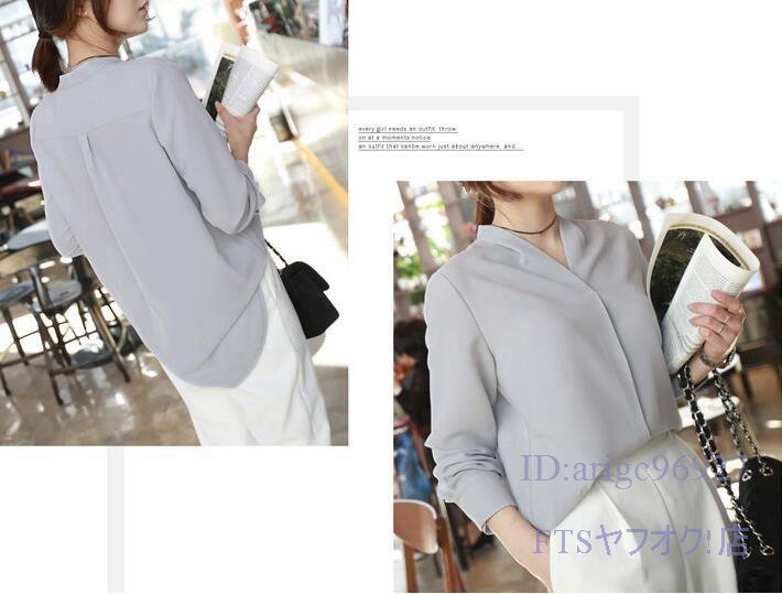 A0257☆新品サイズ選べる? レディース オフィス フォーマル 通勤OL 同窓会 Vネック 着痩せ シフォン 長袖 シャツブラウス * 灰