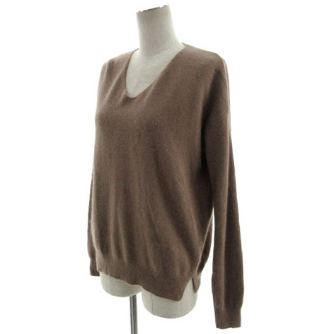 エニィスィス エニシス anySiS ニット セーター シャギー Vネック 裾スリット 長袖 アンゴラ混 ブラウン 茶 2 レディース