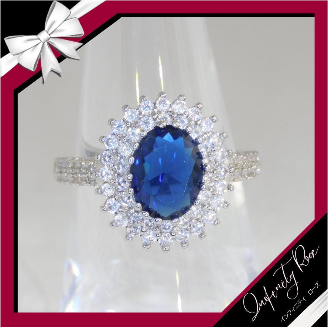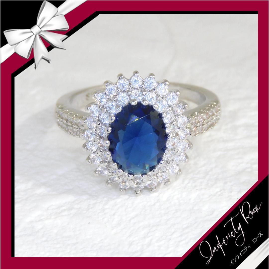 (R056S)14号 素敵すぎるゴージャスなラウンドブルーリング 爪留指輪