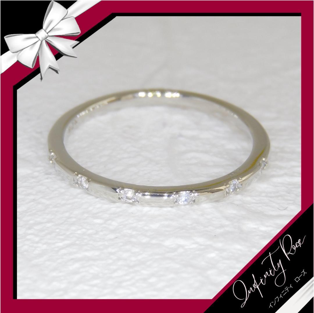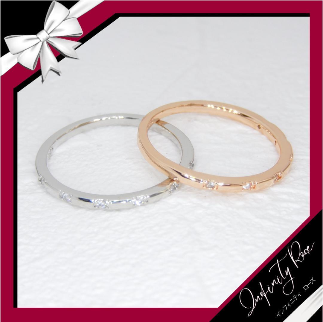 (R050S)22号 シルバー小さな5粒クリスタル細リング 爪留仕様 指輪