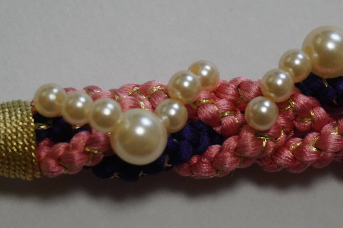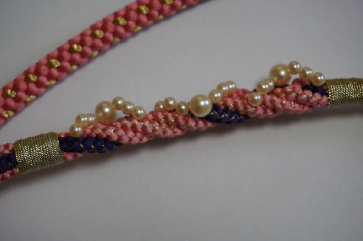 新品即決! 振袖用の飾りつき丸帯締め105(即決)浴衣着用時や髪飾りにも M表示