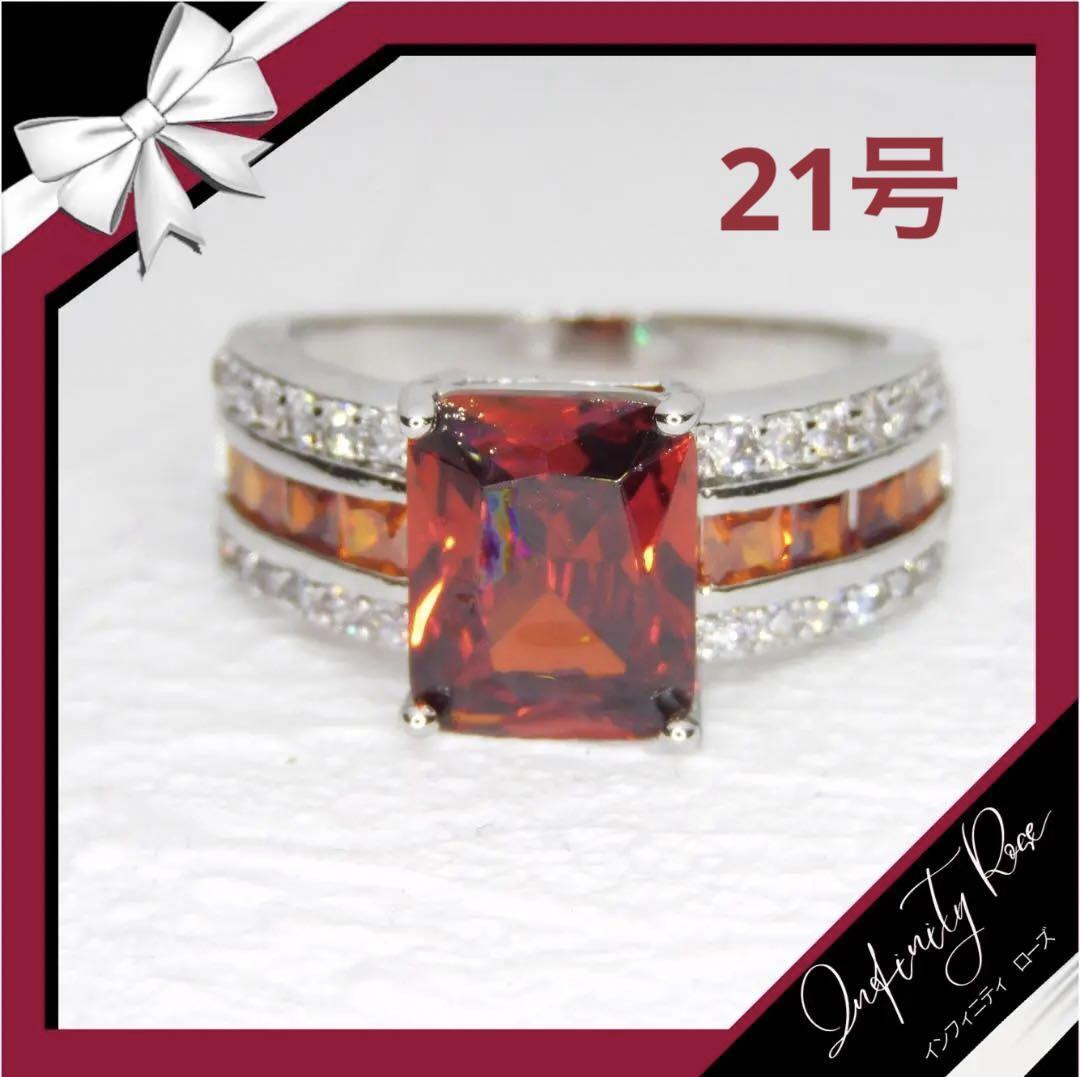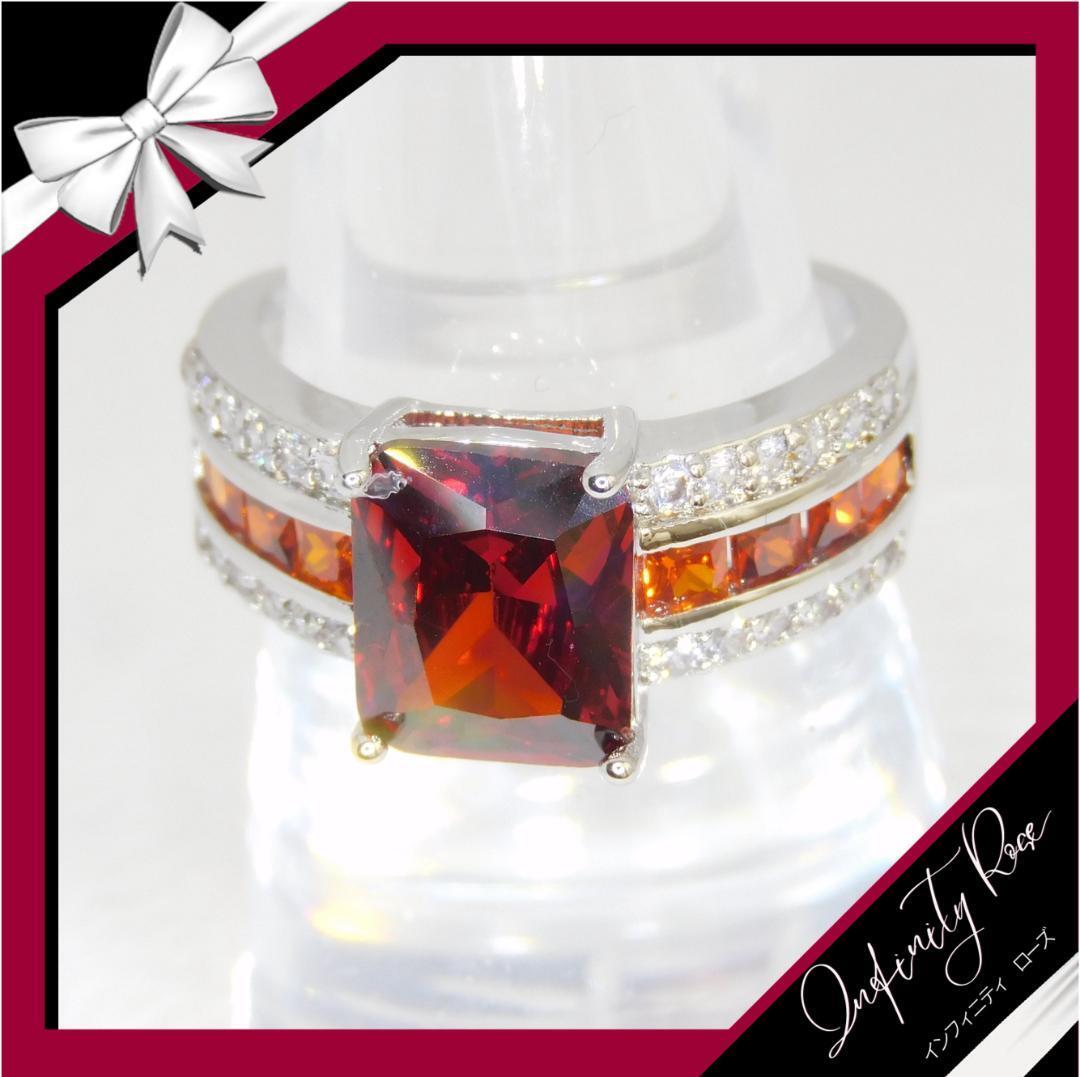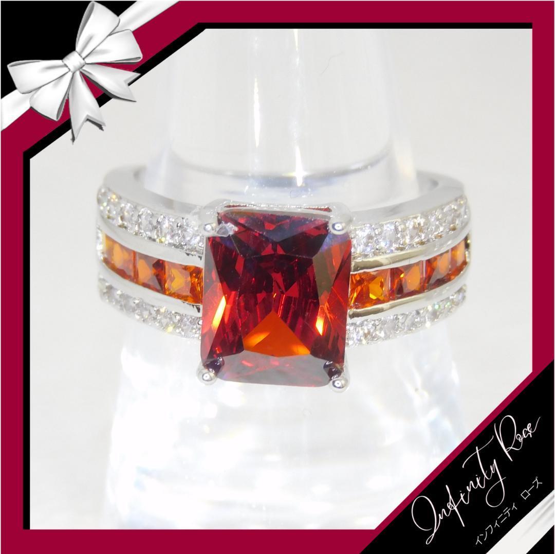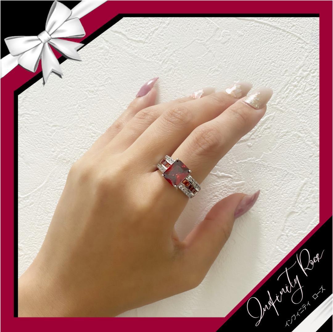 (R047SR)21号 レッド豪華煌めく華やかゴージャスワイドリング 爪留指輪