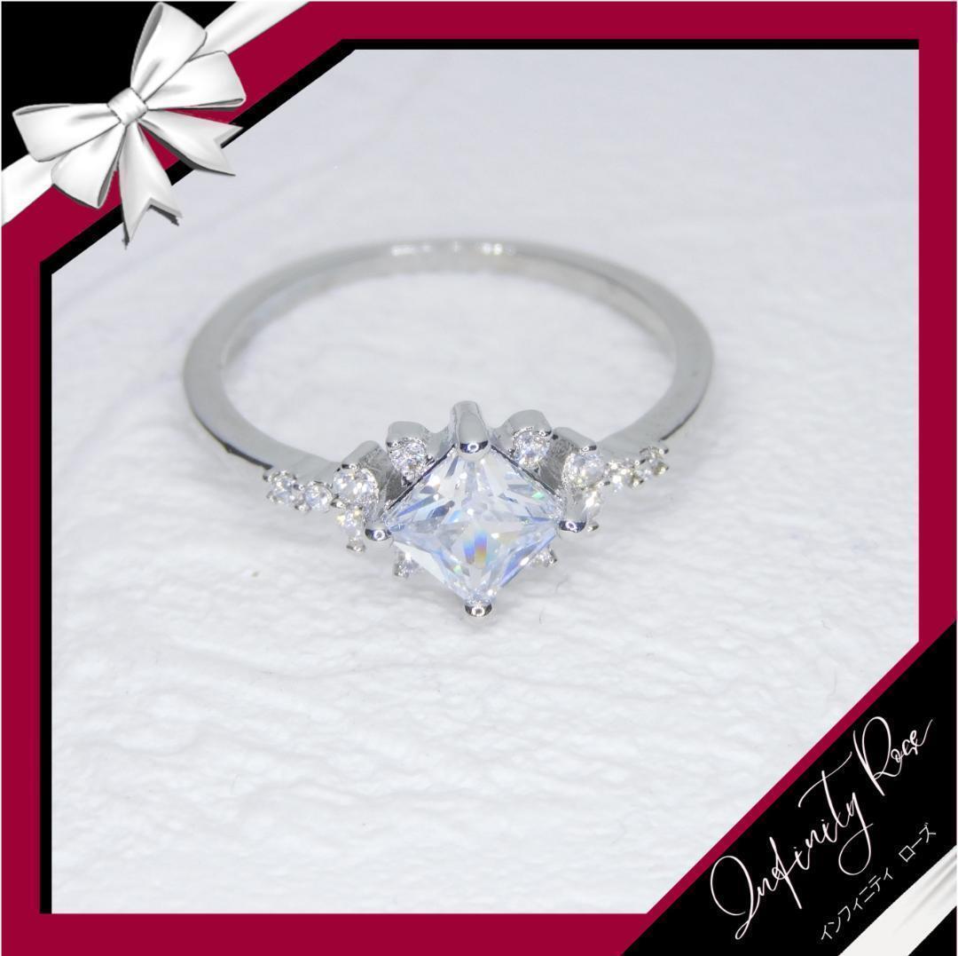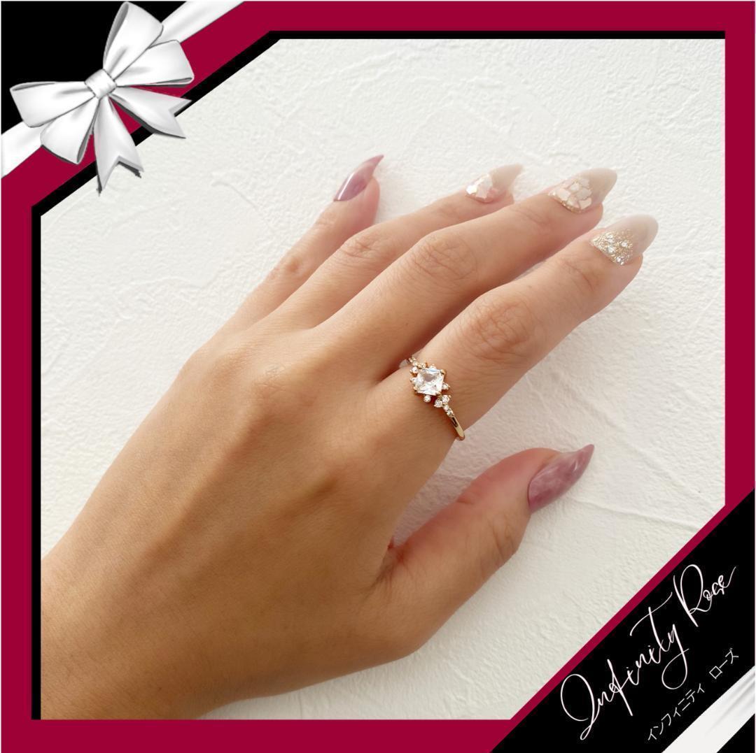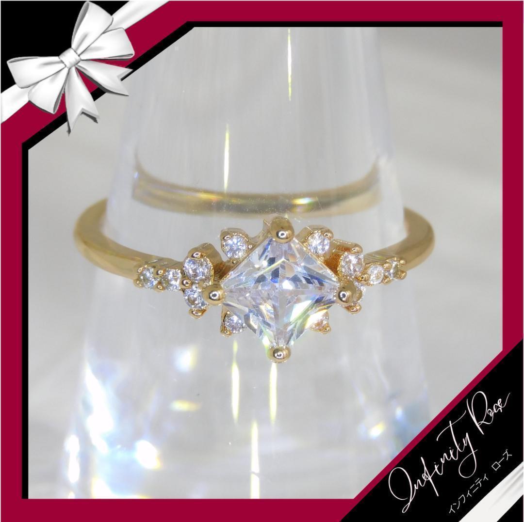 (R049G)22号 ゴールドスクエアオーロラクリスタルリング 高価爪留 指輪