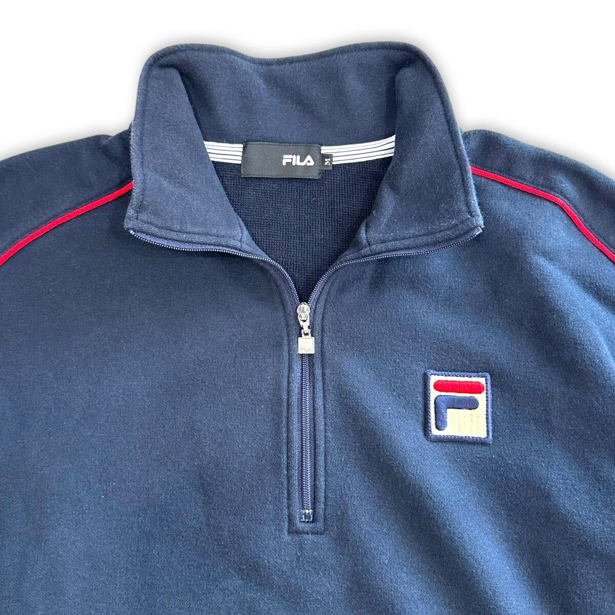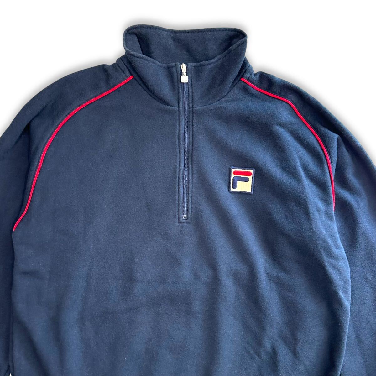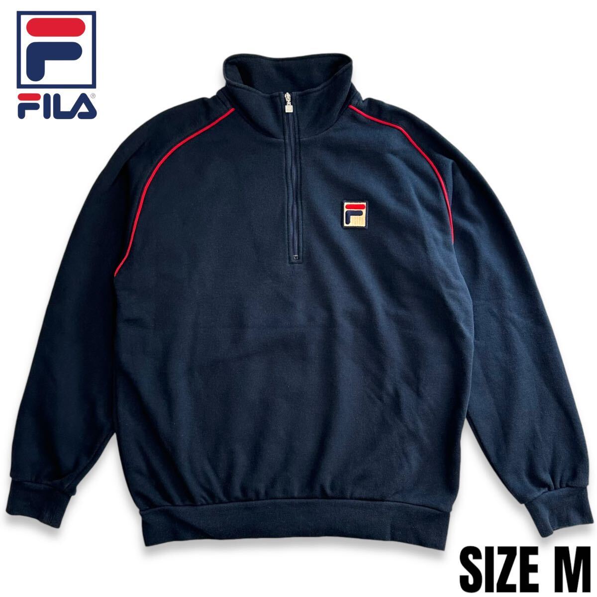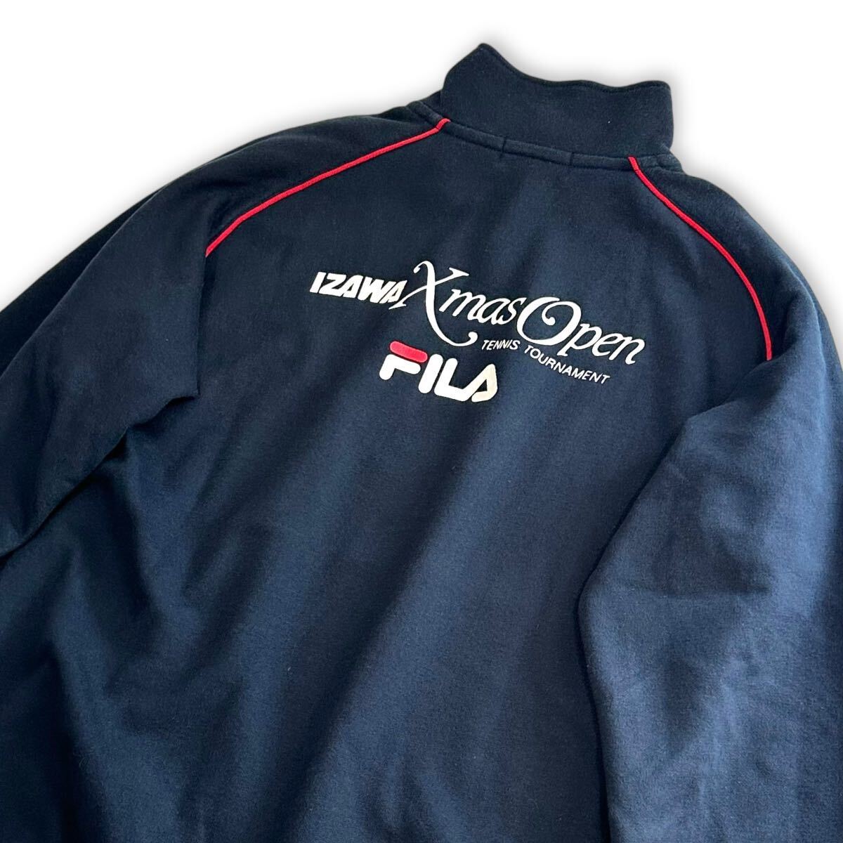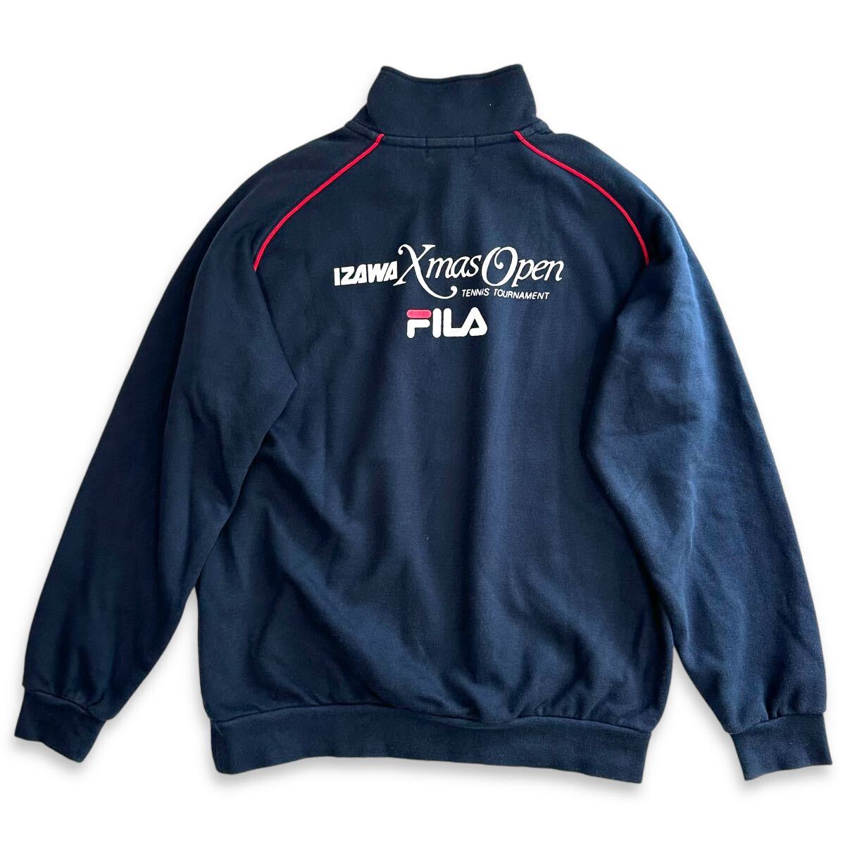 稀少■ FILA (フィラ) 復刻モデル IZAWA Ⅹmas Open TENNIS TOURNAMENT ハーフジップ 長袖 スウェット 紺 ネイビー M ATP テニス BJ ボルグ