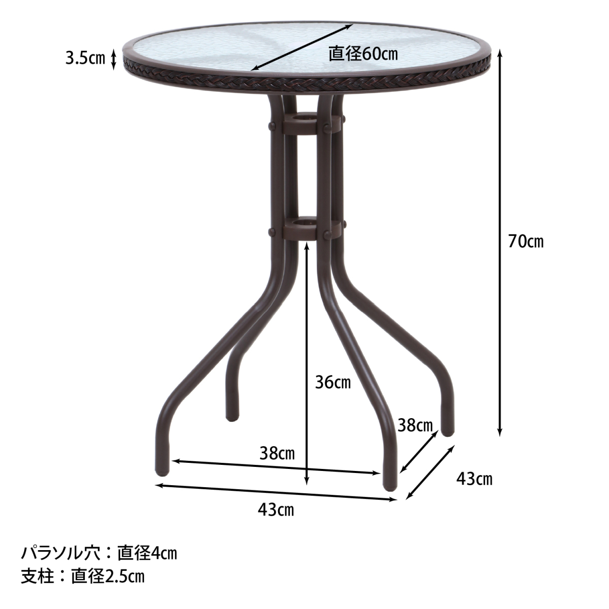 ガーデンテーブル 強化ガラステーブル ブラウンフレーム【新品】【送料無料(一部を除く)】
