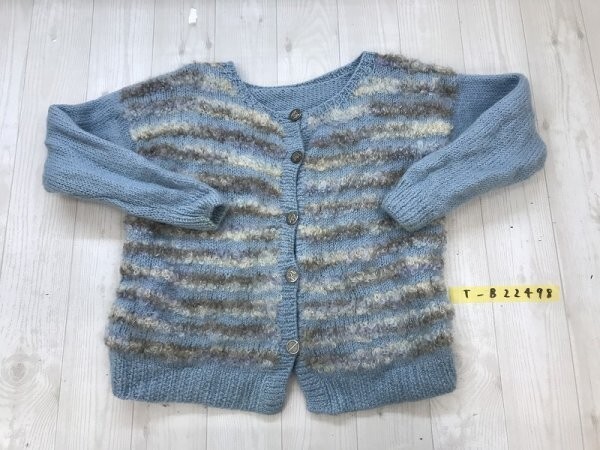 レディース ボーダー 厚手 ニットカーディガン 水色他 です。