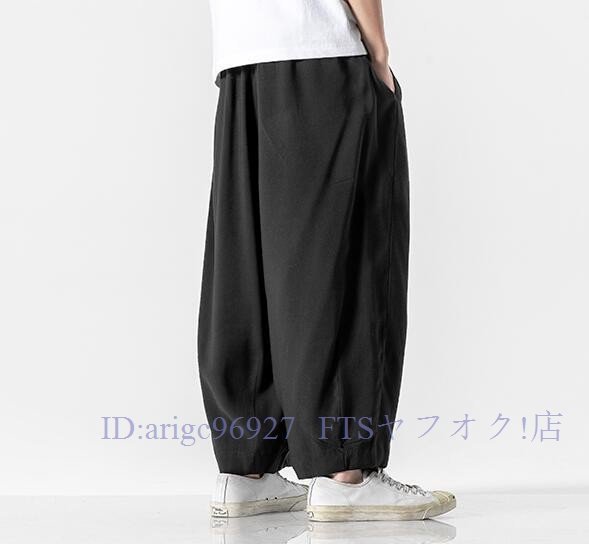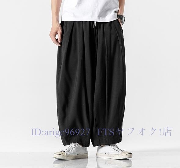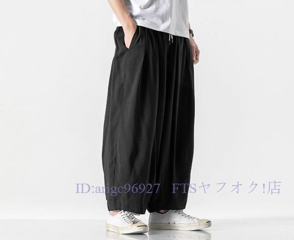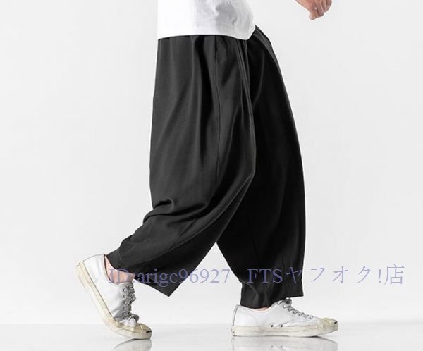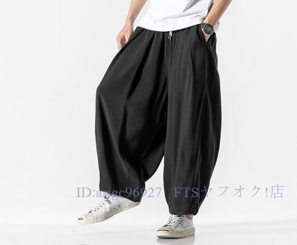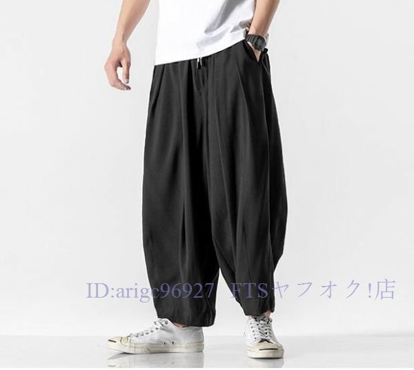 A5855☆新品上品5色 メンズ サルエルパンツ ワイドパンツ スウェットパンツ ボトムス チノパンツ ジョガーパンツ 綿麻リネン M~5XL黒