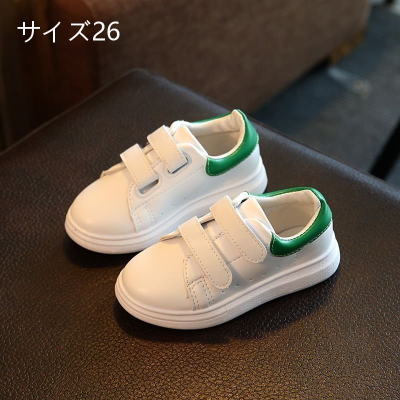 スニーカー スリッポン 子ども用 スケボーシューズ 四季兼用 シューズ 男女兼用 PU革 ローカット撥水 幅広 グリーン 26 LB155