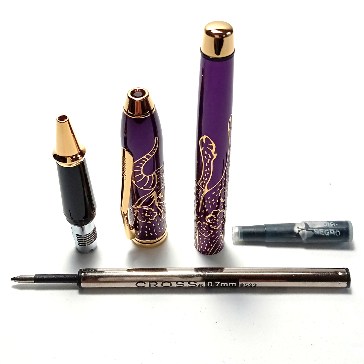 | 【モデル】タウンゼント/TOWNSEND イヤー・オブ・ザ・オックス/YEAR OF THE OX AT0045-65RB 【カラー】パープルGT 牛 【仕様】ボディ/キャップ:真鍮ベース+ブルーラッカー 口金/リング/キャップトップ/クリップ:23金ゴールドプレート キャップトップ:スワロフスキー クリスタルパープル キャップ式 【サイズ(約)】約150mm(収納時)/約137mm(筆記時) 最大胴軸径:約13.5mmφ 【初期装填】ブラック 0.7mm M中字 【付属品】専用ケース、取説、インクカートリッジ(多少蒸発しています。) モデル違いカラー違い等、他にも多数出品しています。 発送方法について ゆうパック元払い発送以外は承っておりません。 同梱いたします。(何点でも送料は1点分です。) 土日祝日の発送はお休みを頂いております。 | |