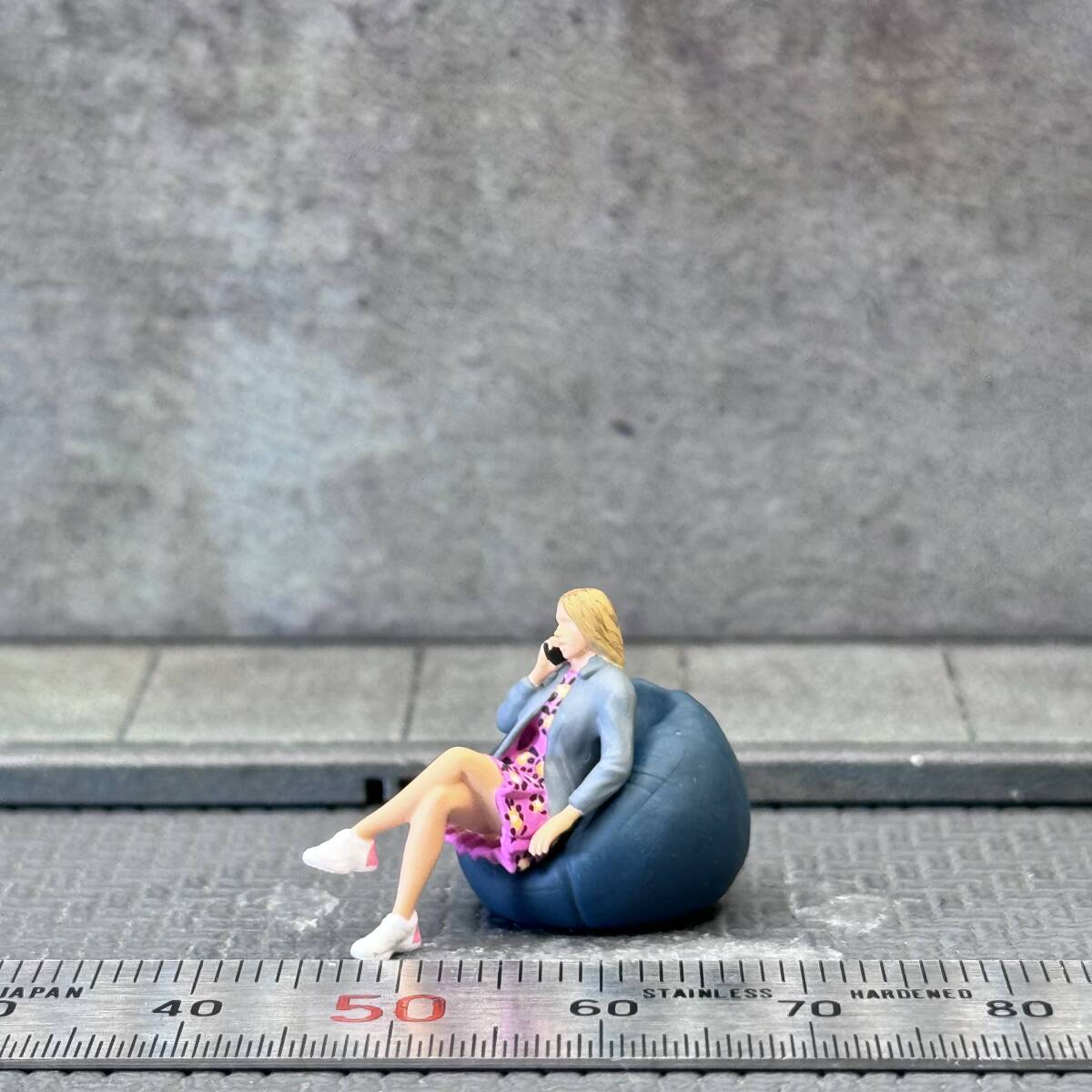 【KS-641】1/64 スケール ビーズクッションで寛ぐ女性 セット フィギュア ミニチュア ジオラマ ミニカー トミカ