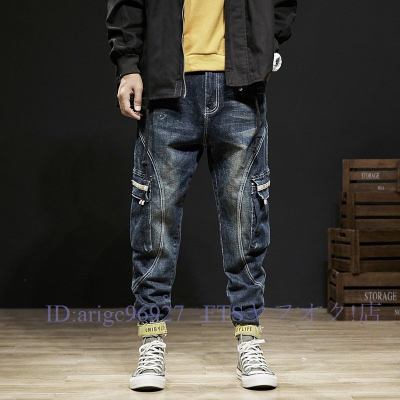 A5403☆新品美脚 デニムパンツ バイクパンツ メンズ テーパード サルエルパンツ カーゴパンツ ジーンズ バイクジーンズ ジーパン